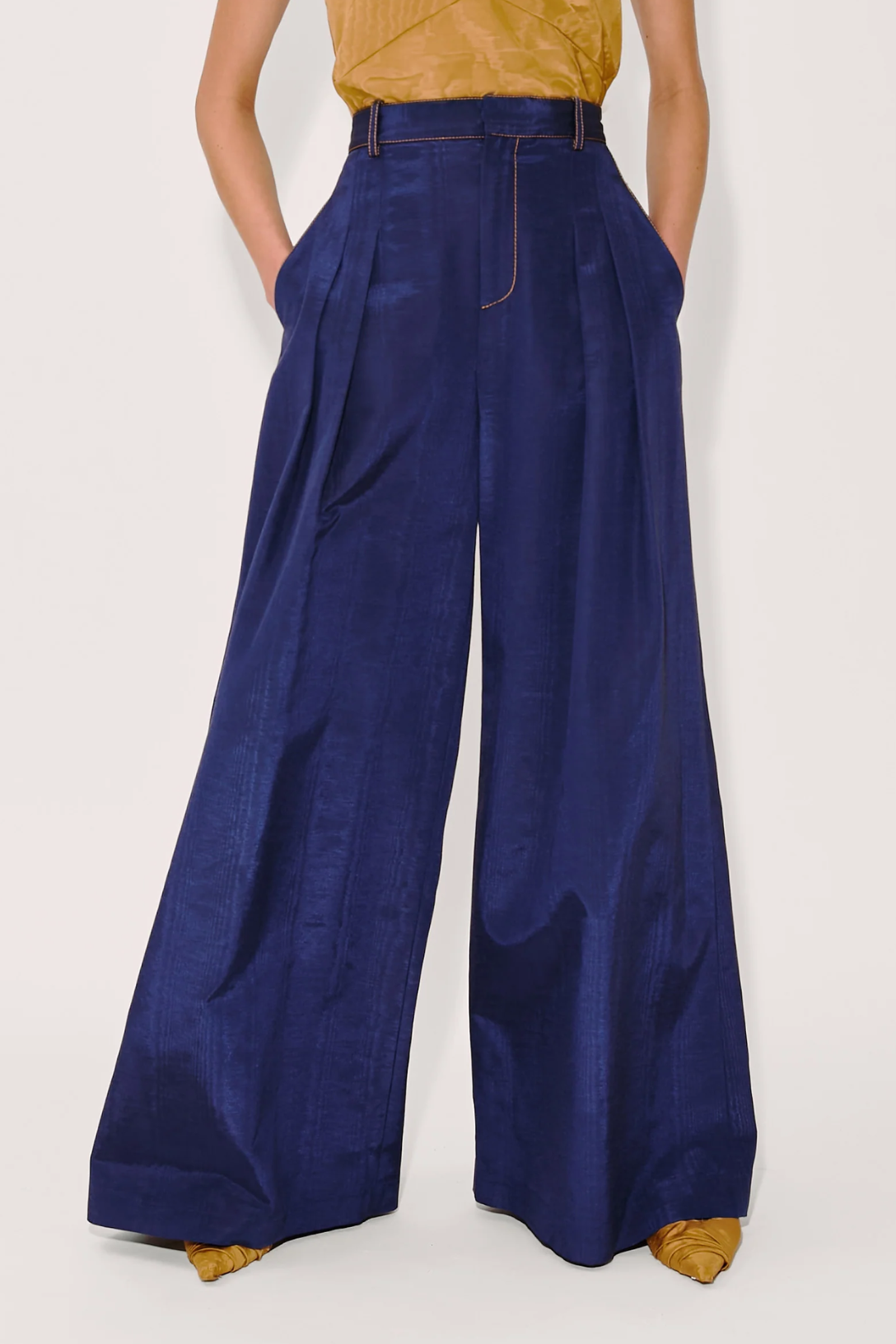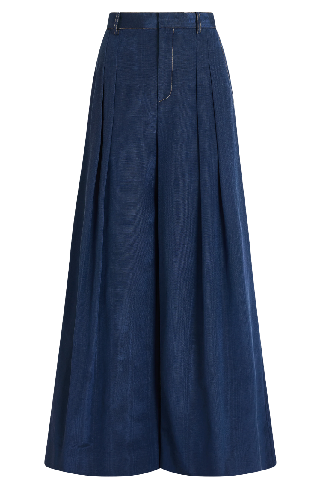 The Wide Leg Pleat Pleat Pants in Ridged Moire redefine structure with ease. Designed with sharp front pleats and a sweeping wide-leg silhouette, these pants bring movement and elegance to everyday dressing. The subtle ridged moire texture adds dimension, while tailored details elevate their polish.