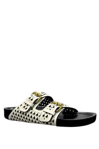 Leopard Print Laminated Buckle Sandals | Warm Gold