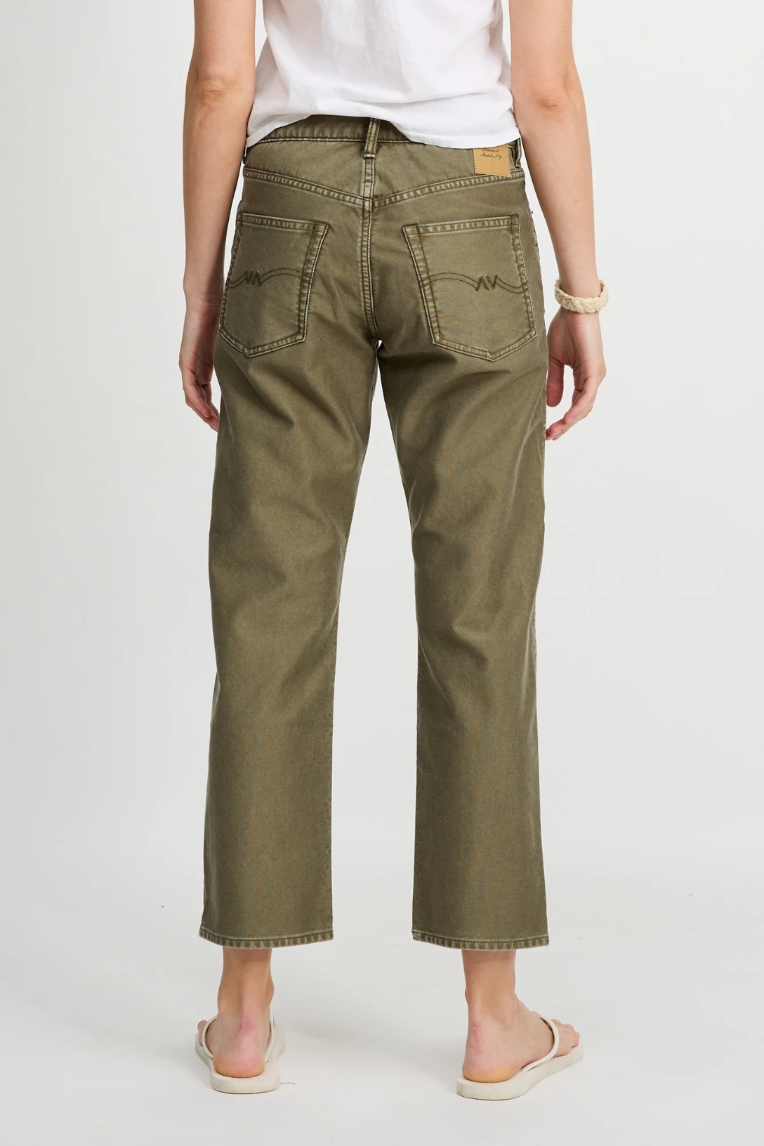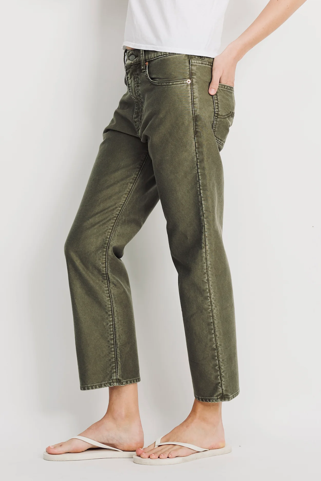 Mid-rise jean with a relaxed fit through the hip and a slim, straight leg. Five-pocket styling. Finished in textured Bedford cord.