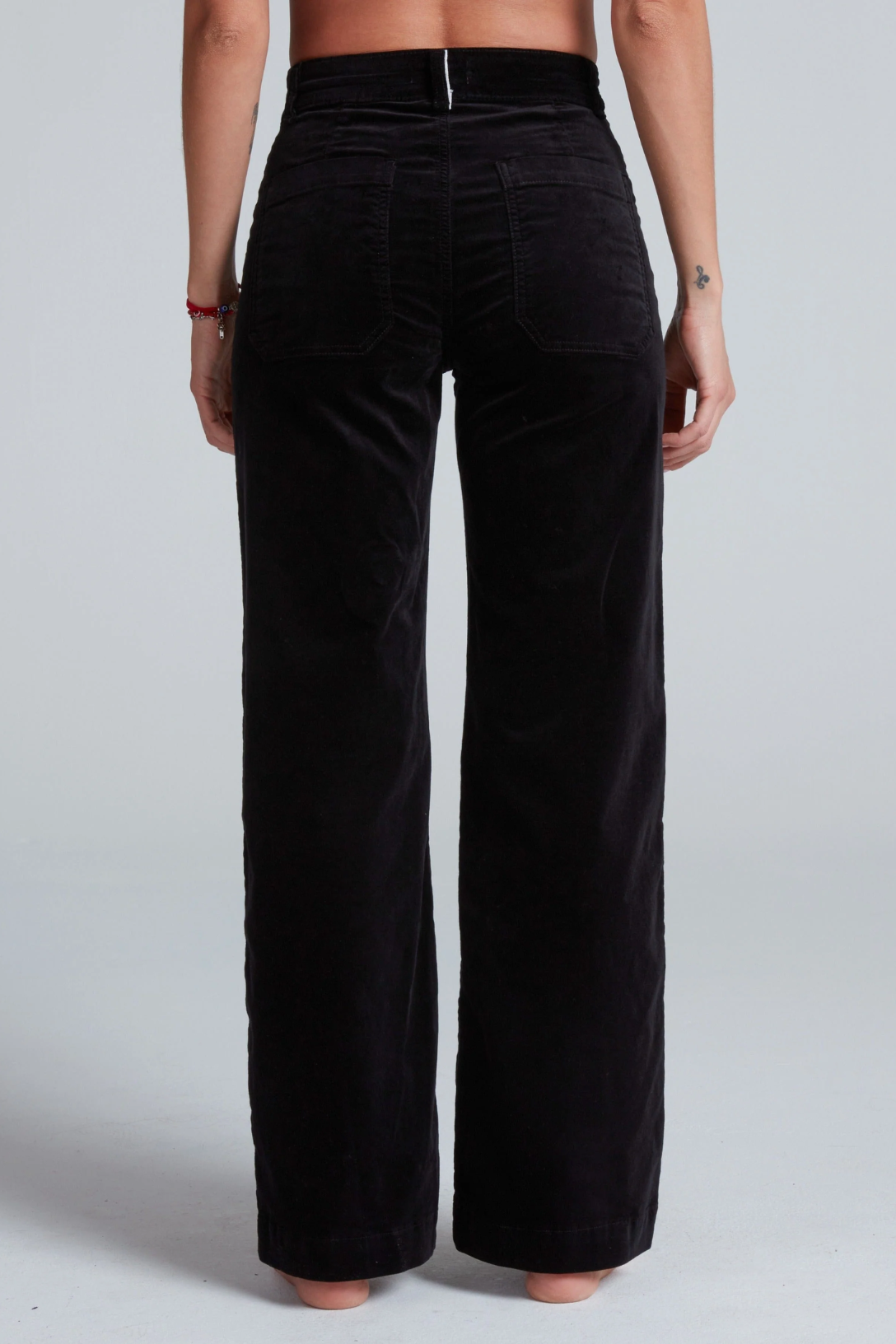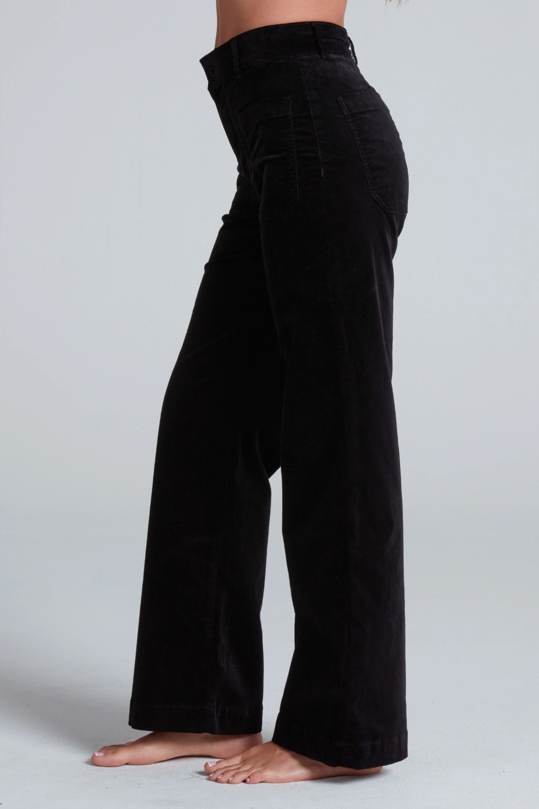 ASKK NY's classic silhouette featuring a high rise, relaxed wide leg, and iconic sailor pocket details. The Sailor is reimagined in soft stretch velvet, offering a luxurious update to this timeless shape. Designed with clean patch pockets and a cropped inseam, it balances vintage inspiration with modern versatility—perfect for both day and evening wear.