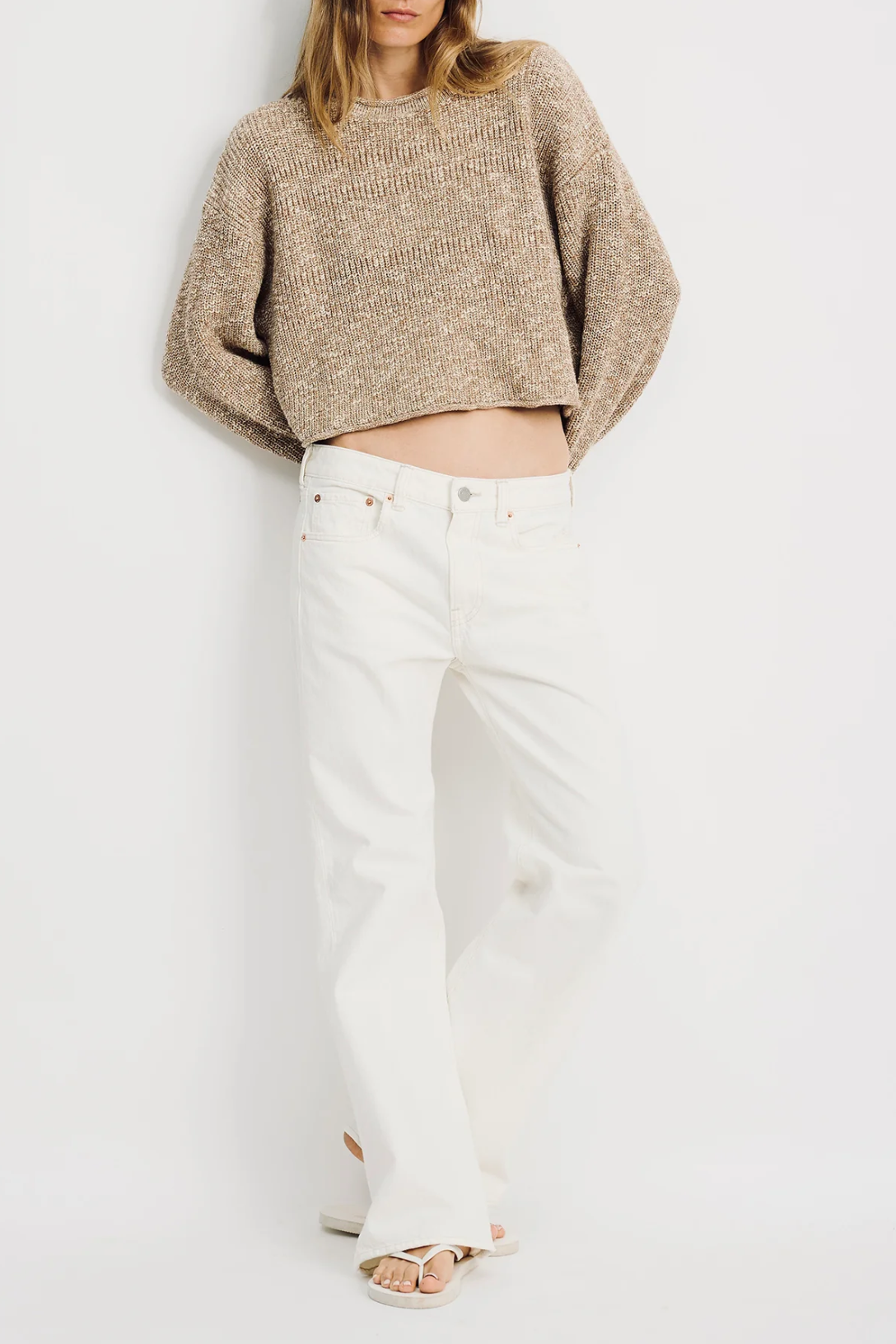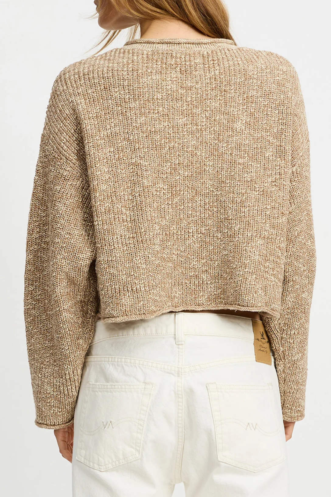 Cropped Relaxed Sweater | Tan Marled