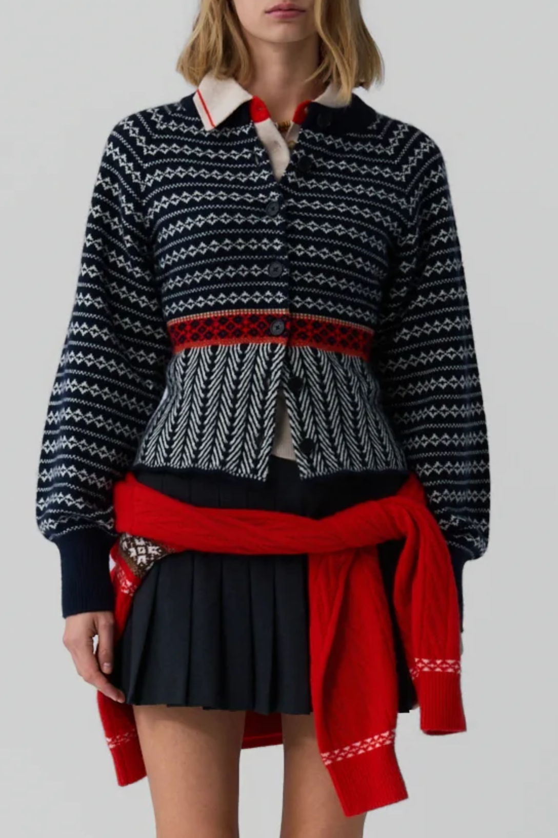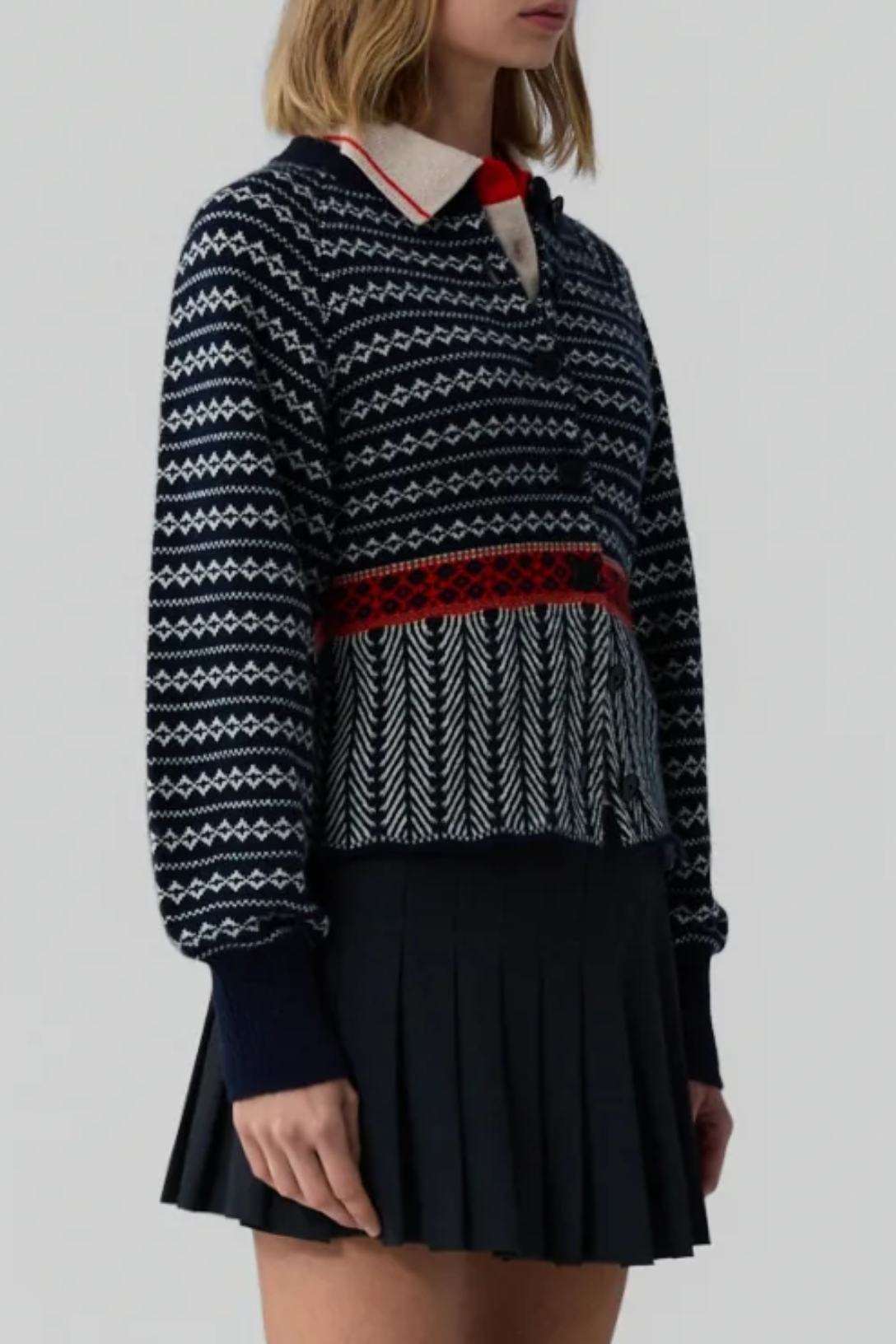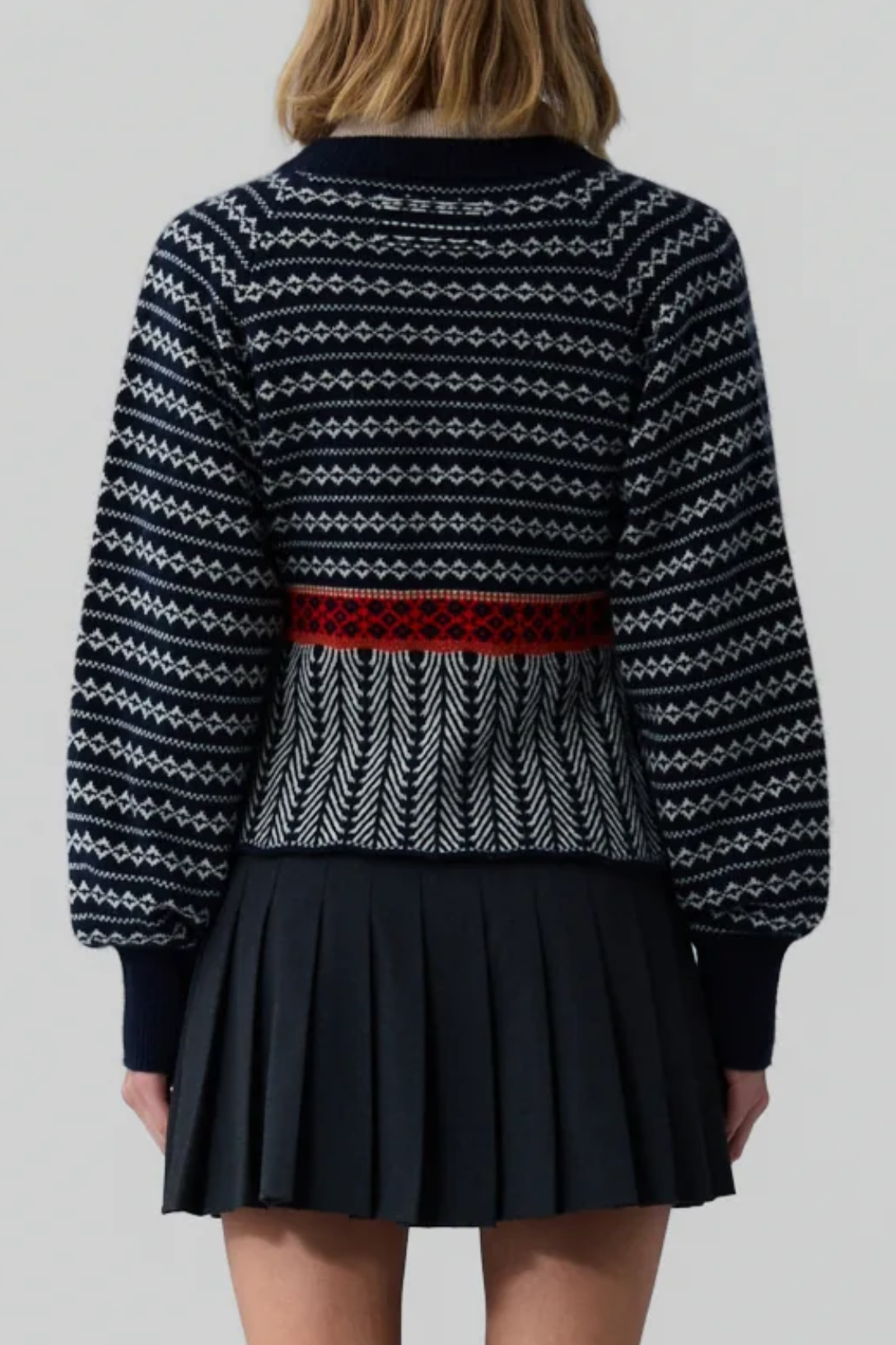 - Fair isle trim detail at hem