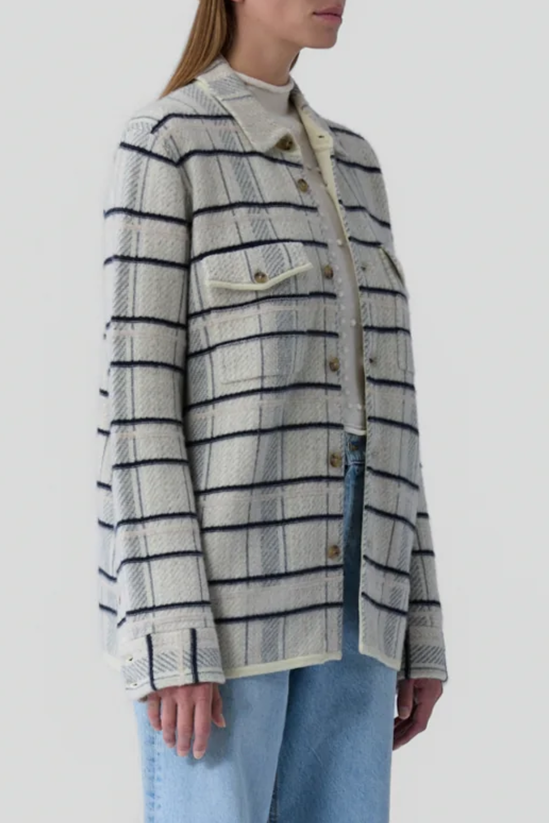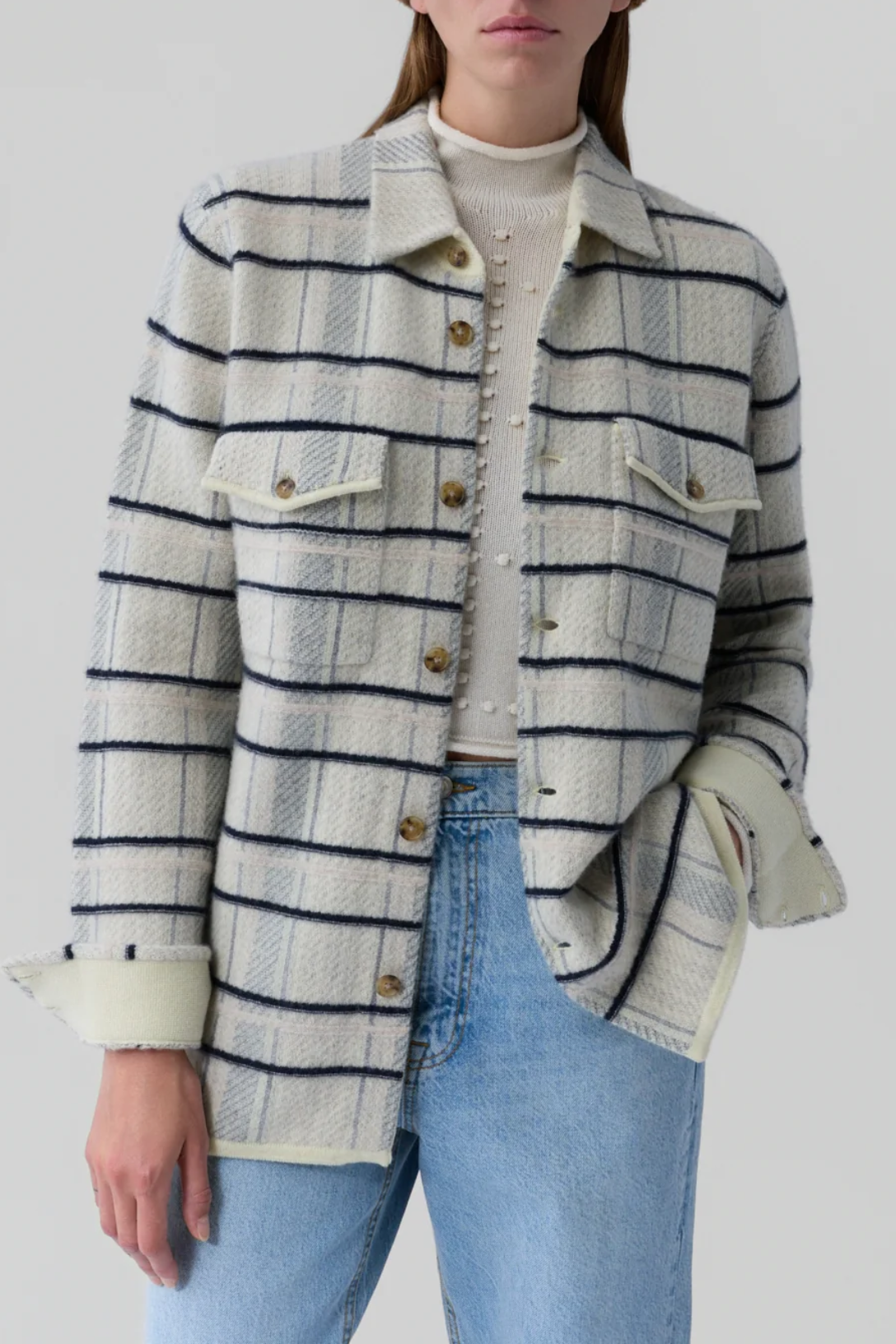 A modern take on classic Western workwear, the Plaid Work Shirt is crafted from 100% medium-weight cashmere with an intentionally oversized fit. Its colorful plaid pattern and soft texture make it the ultimate everyday layer — worn solo or over knits.