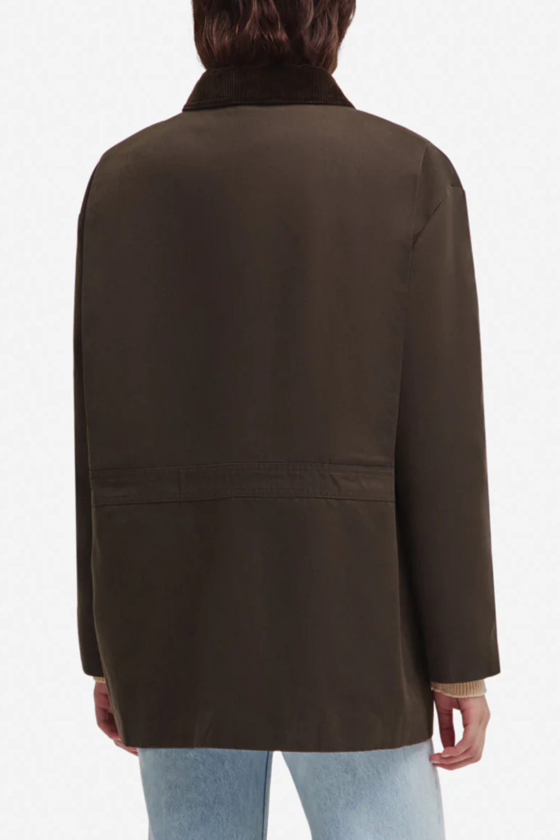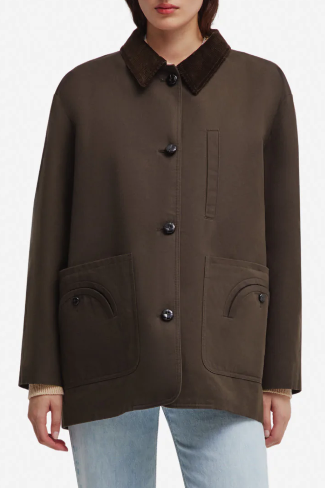 - Chocolate-brown corduroy collar