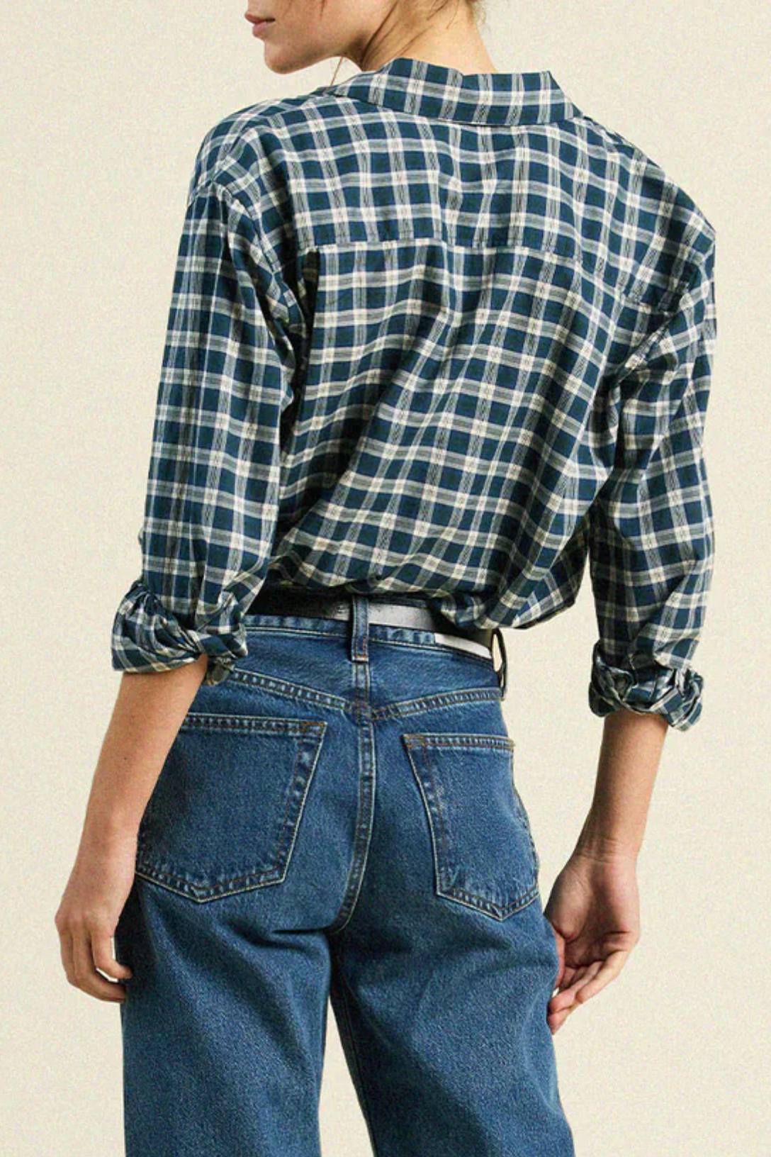 The Blake oversized boyfriend shirt is a button-down meant to live in your wardrobe for years. It truly gets better with each wear, growing softer every wash. This shirt has an oversized boyfriend fit completed with antique white buttons and a single chest pocket. Made from cotton and shown here in Maritime Plaid.