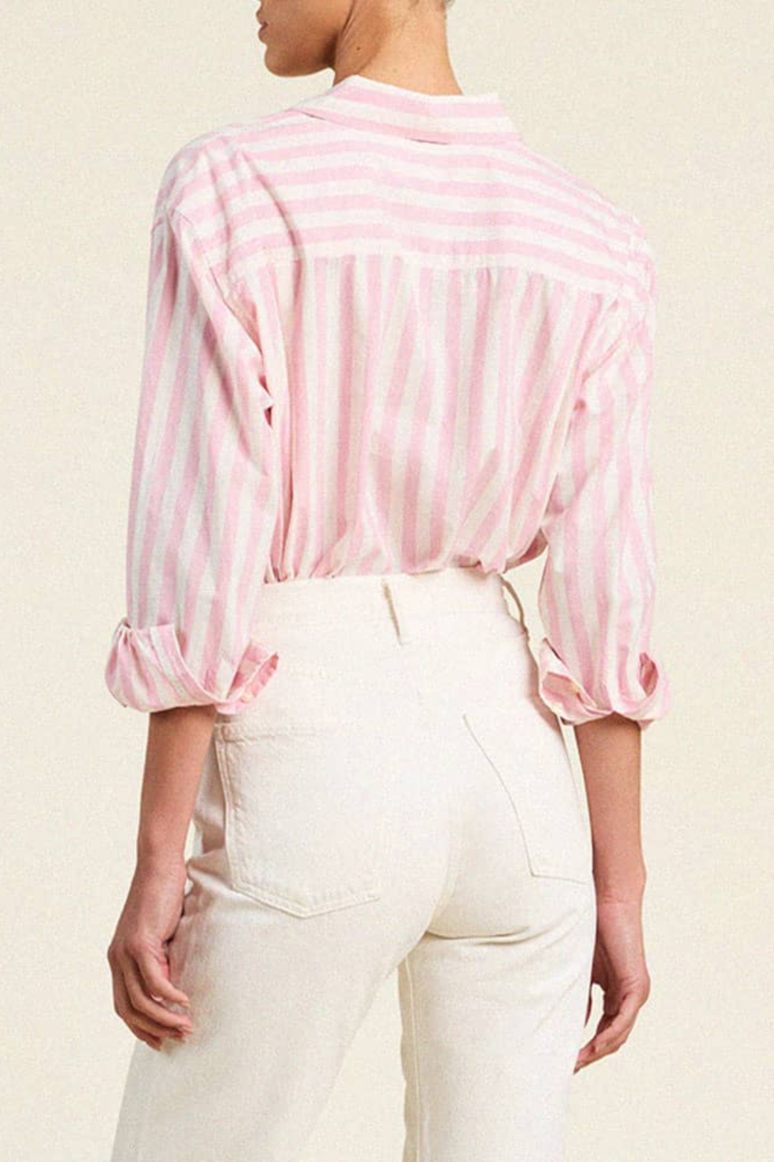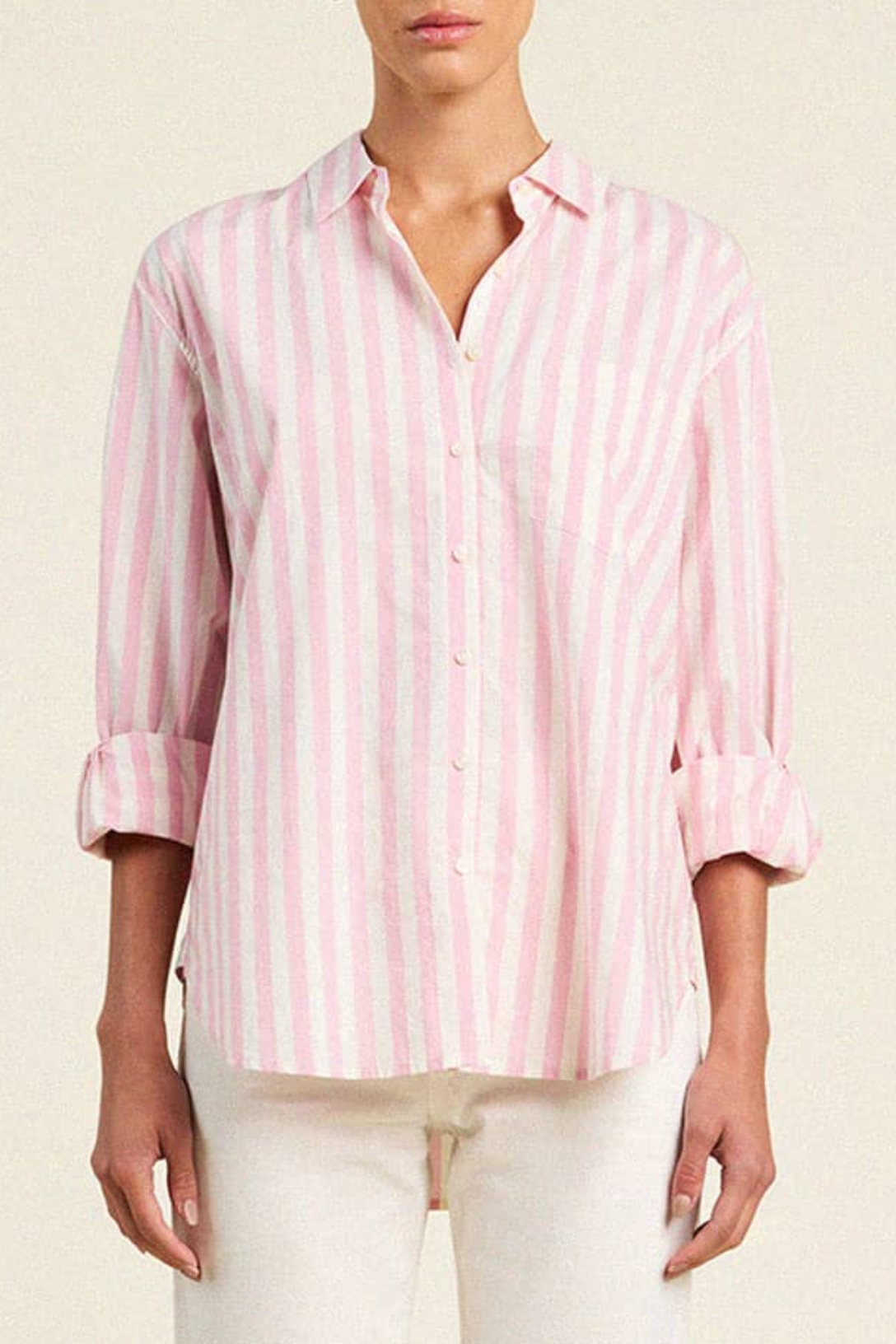 The Blake oversized boyfriend shirt is a button-down meant to live in your wardrobe for years. It truly gets better with each wear, growing softer every wash. This shirt has an oversized boyfriend fit completed with antique white buttons and a single chest pocket. Made from TROVATA's cotton poplin and shown here in Pink Stripe.
