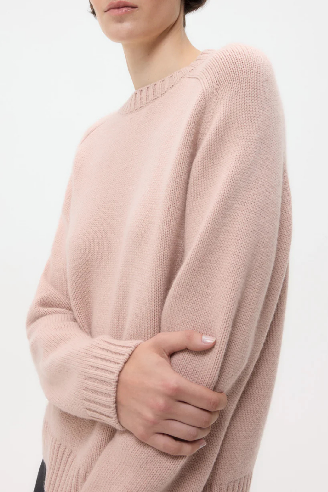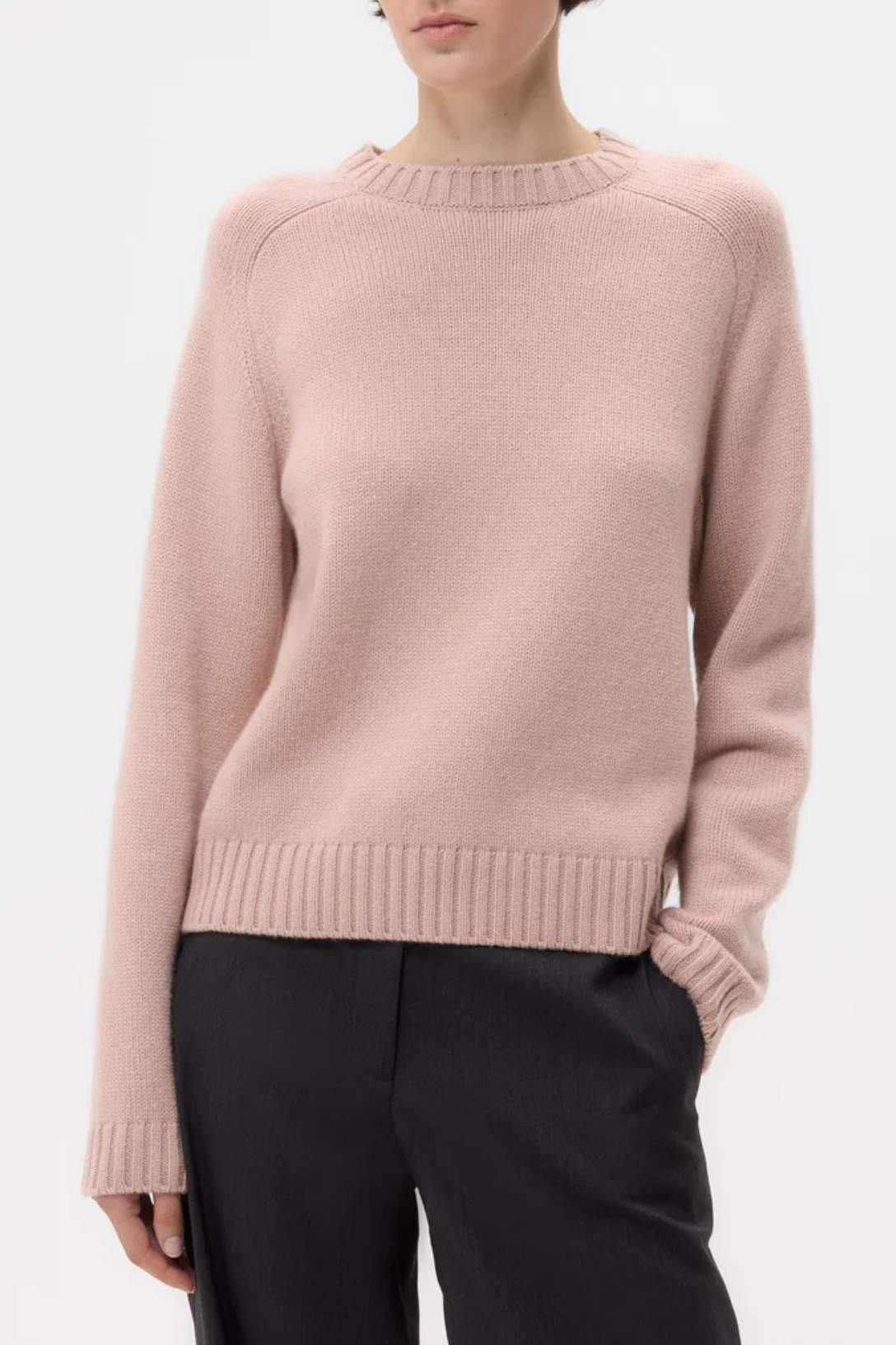 Long sleeve, crewneck sweater knitted in five-gauge Italian cashmere. The cashmere is spun at an Italian heritage mill from single-origin yarns sourced for their unparalleled softness. The Jill Crewneck is a boxy fit, fully fashioned at the arm-holes. Complete with a ribbed finish at the collar, cuffs and hem.