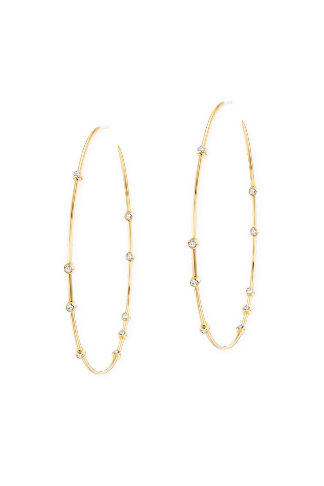The float hoops are a reminder of Uniform Object's propensity for organic order. 2mm diamonds in bezel setting - hand set in a unique arrangement. Extremely light-weight and made for everyday wear.