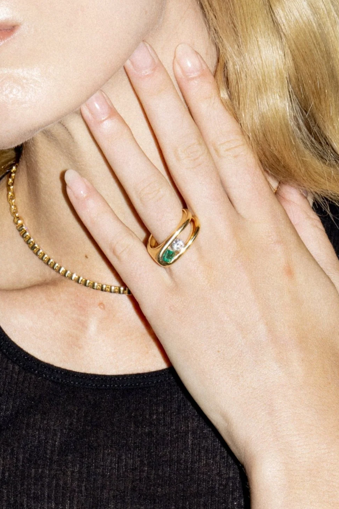 Impact Ring with Asscher Cut Emerald and Diamond by Uniform Object.