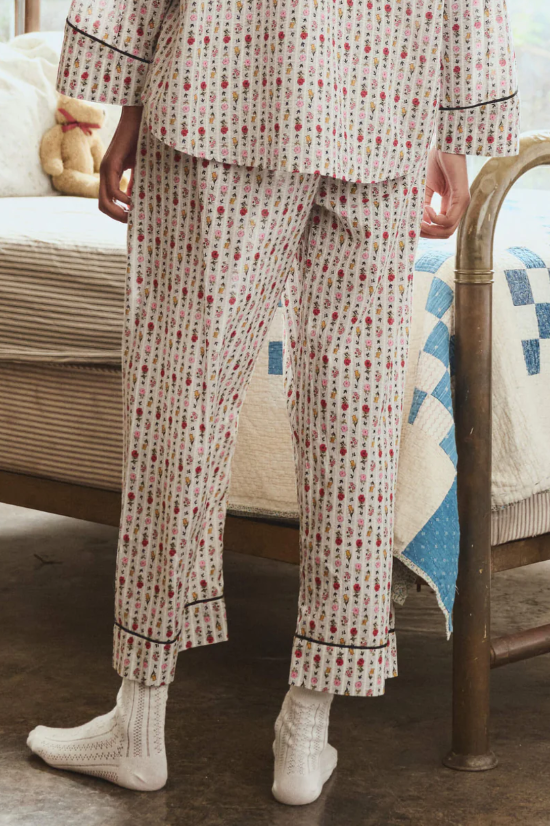 The Easy Sleep Pant. is the epitome of elevated comfort. Crafted from the softest 100% cotton in this season’s Ribbon Floral, it features a wide leg, slightly dropped crotch, and elastic high waist. Wear it with its matching, The Pajama Shirt. for mornings at home or your favorite tee for a relaxed yet polished look on the go.