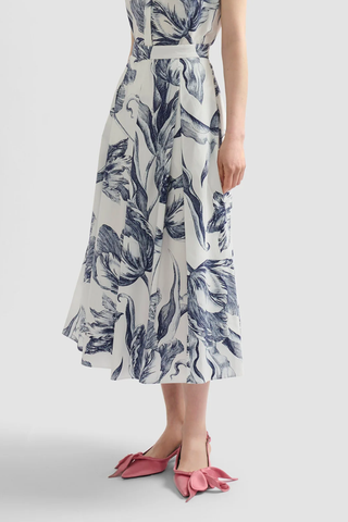 Floral Print Fluted Midi Skirt | Abstract Rose Navy