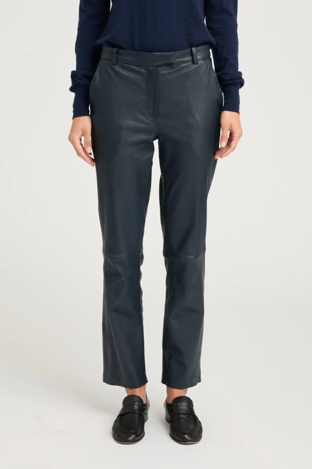 A luxurious take on a classic cigarette pant, made in SPRWMN's signature stretch-leather for an effortlessly chic and wearable look. Featuring five functional pockets, belt loops and an ultra-sleek fit, these pants strike the perfect balance of modern and edgy. With a wide range of styling options, these pair well with heeled boots or sneakers, a cashmere sweater or a leather top.