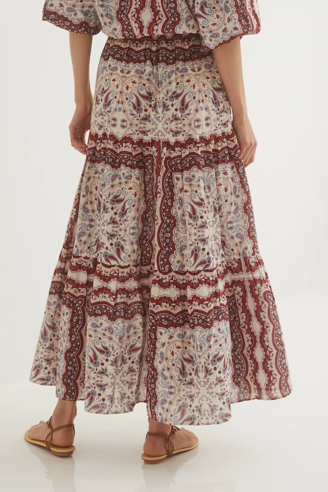 The Melanie in cotton voile is perhaps Cara Cara's most effortless skirt. The elastic waist and tiered silhouette flatter the figure and provide multiple styling options. Pair with the matching Perrin Top in the same print for a fresh look or dress down with a white tee and kicks.