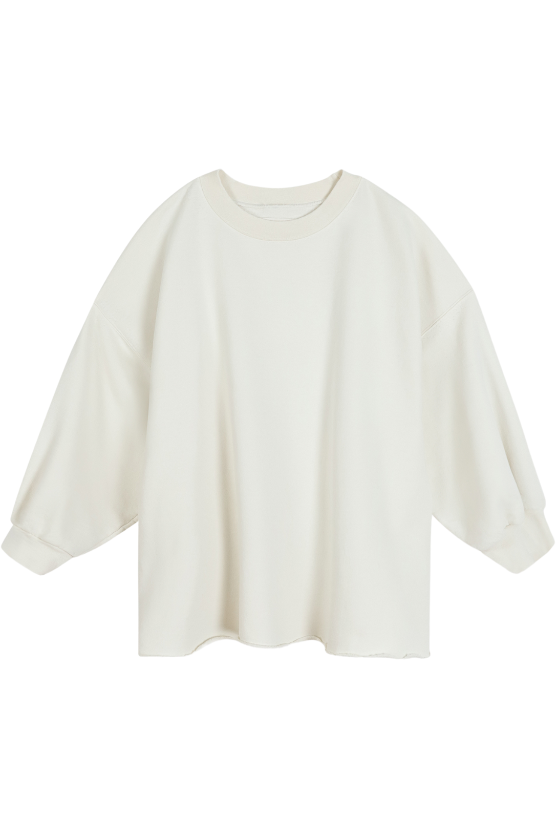 Rachel Comey's classic crewneck sweatshirt with drop shoulders, cropped sleeves, a raw edge hemline, and unique distressing throughout. Makes a great styling piece for any look.