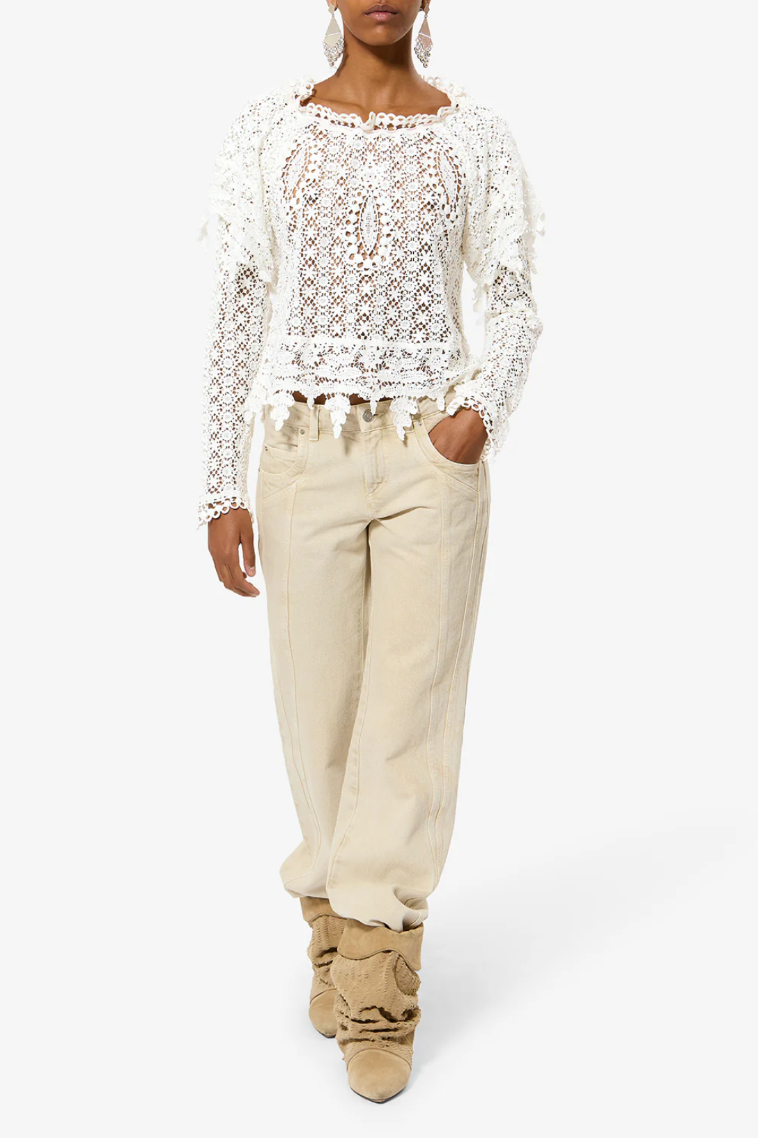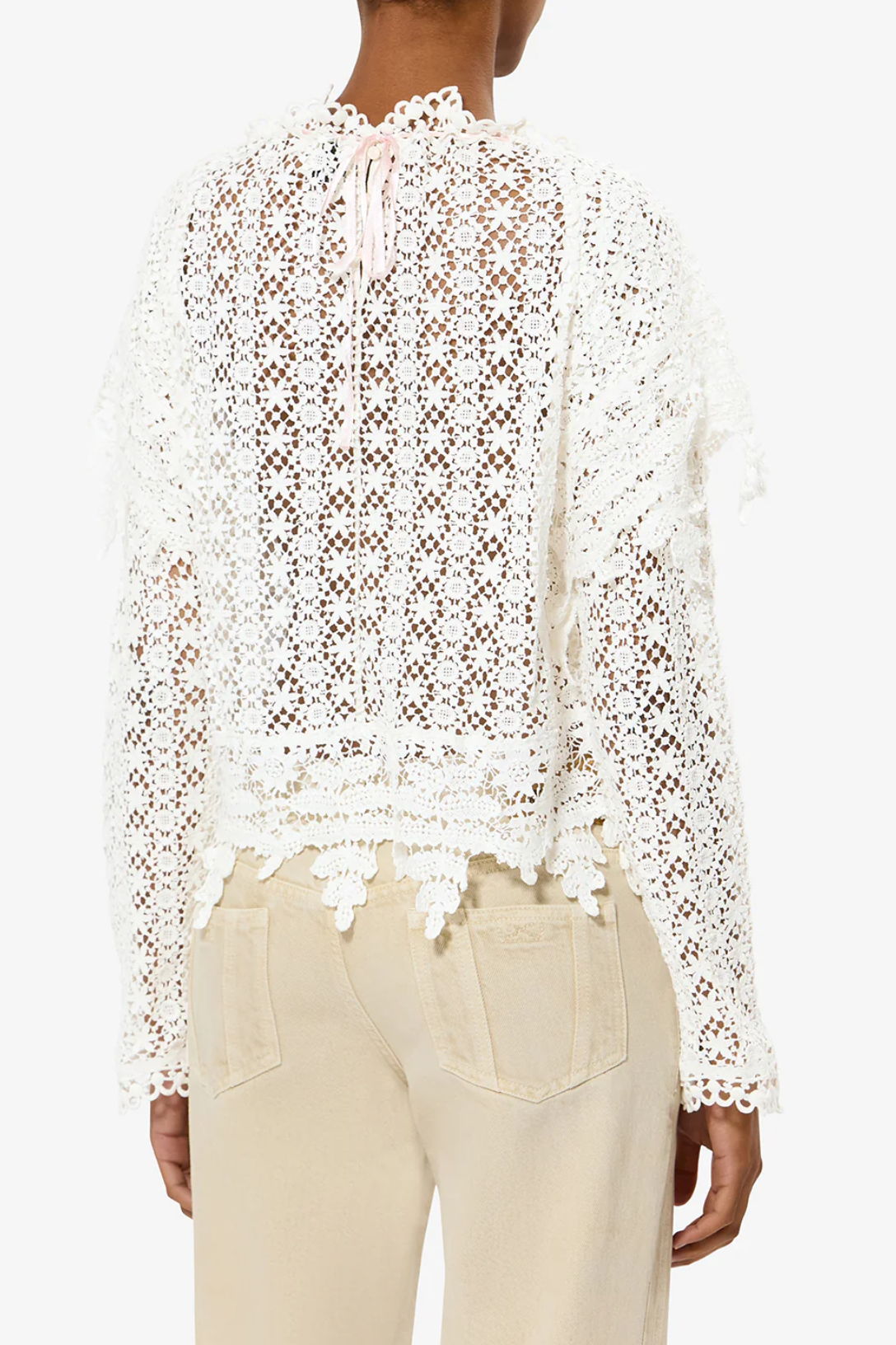 - Guipure lace trim details