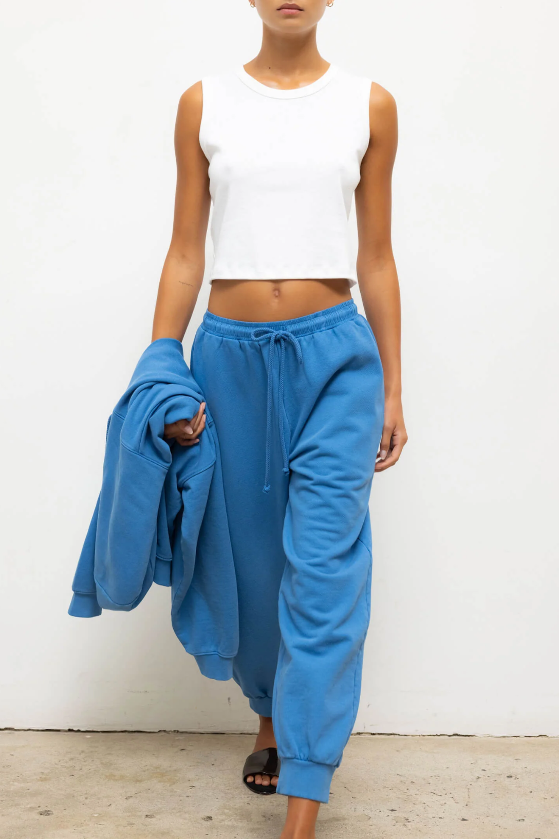 Cut in LESET's polished Nando Baby Rib Cotton, The Nando Sleeveless Crew features a classic crew neckline, sleeveless silhouette, and slightly cropped length.