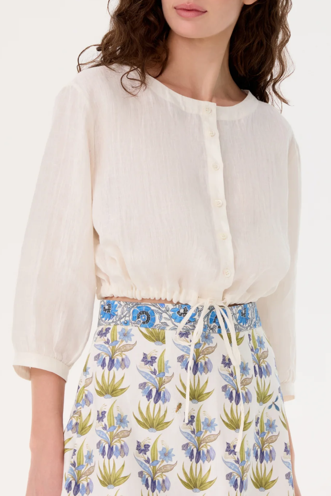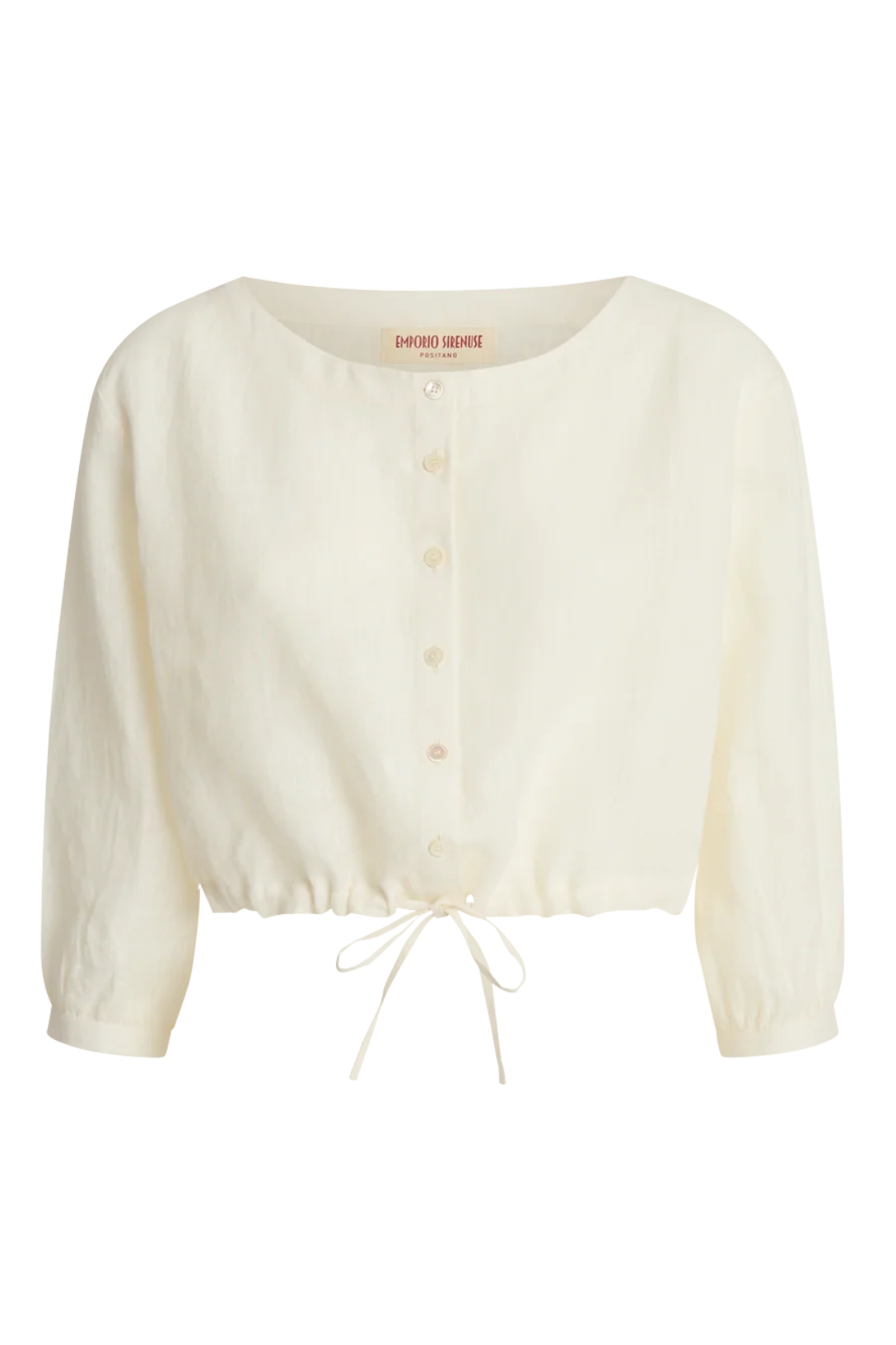 Evoking the ease of the Italian Riviera, the New Jinny Top is an airy, cropped shirt cut from handloomed linen. Finished with a drawstring waist and mother-of-pearl buttons, it’s an Emporio Sirenuse staple for anchoring the season’s prints.