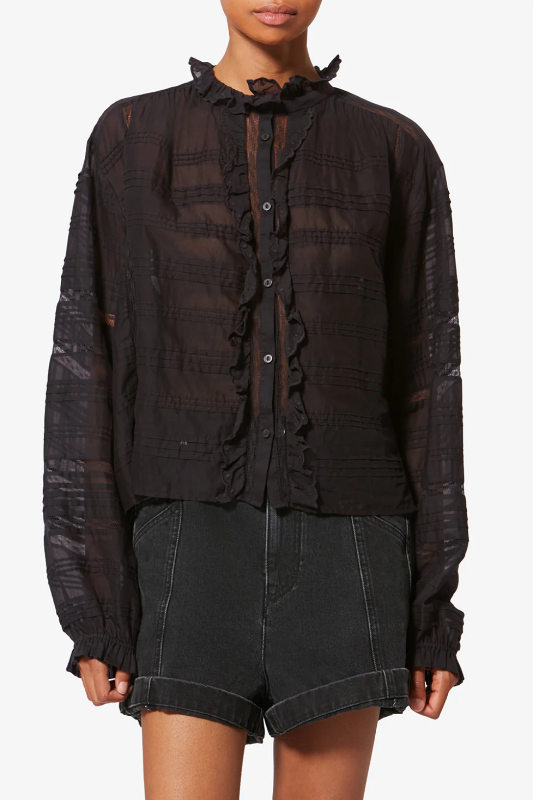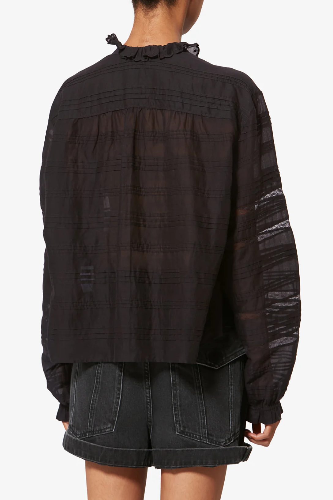 - Frilly crew neck
