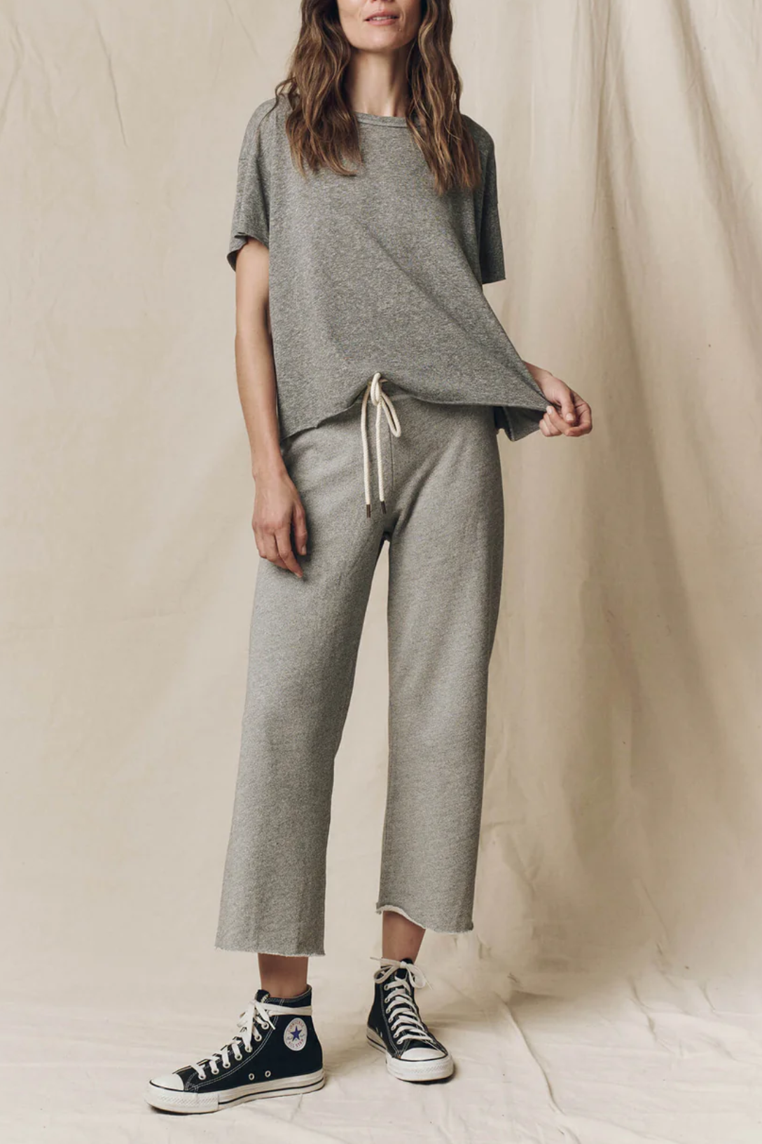 Cut cropped and boxy this top is made from super soft cotton with a lived-in wash. This tee looks great with a high-rise jean, feminine skirts, or layered under a lightweight jacket. Handcrafted locally in Los Angeles, THE GREAT's process ensures beauty and uniqueness—no two pieces are alike.
