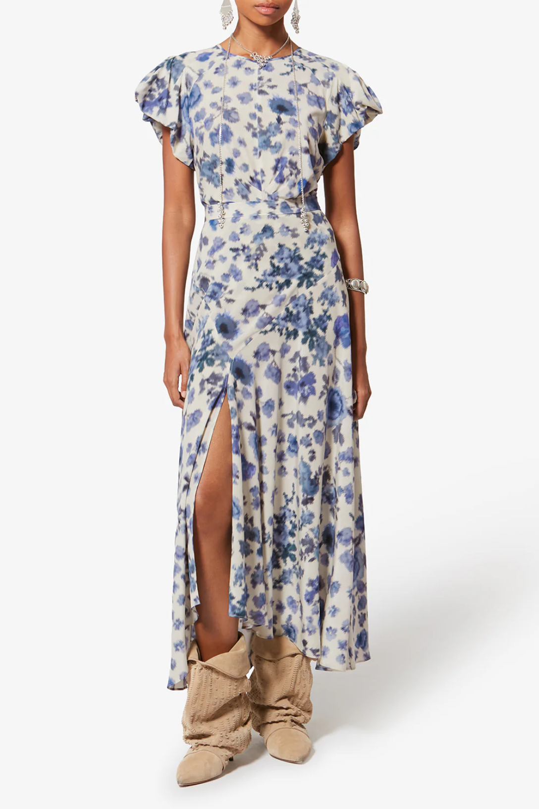 - Short pleated and puffed sleeves