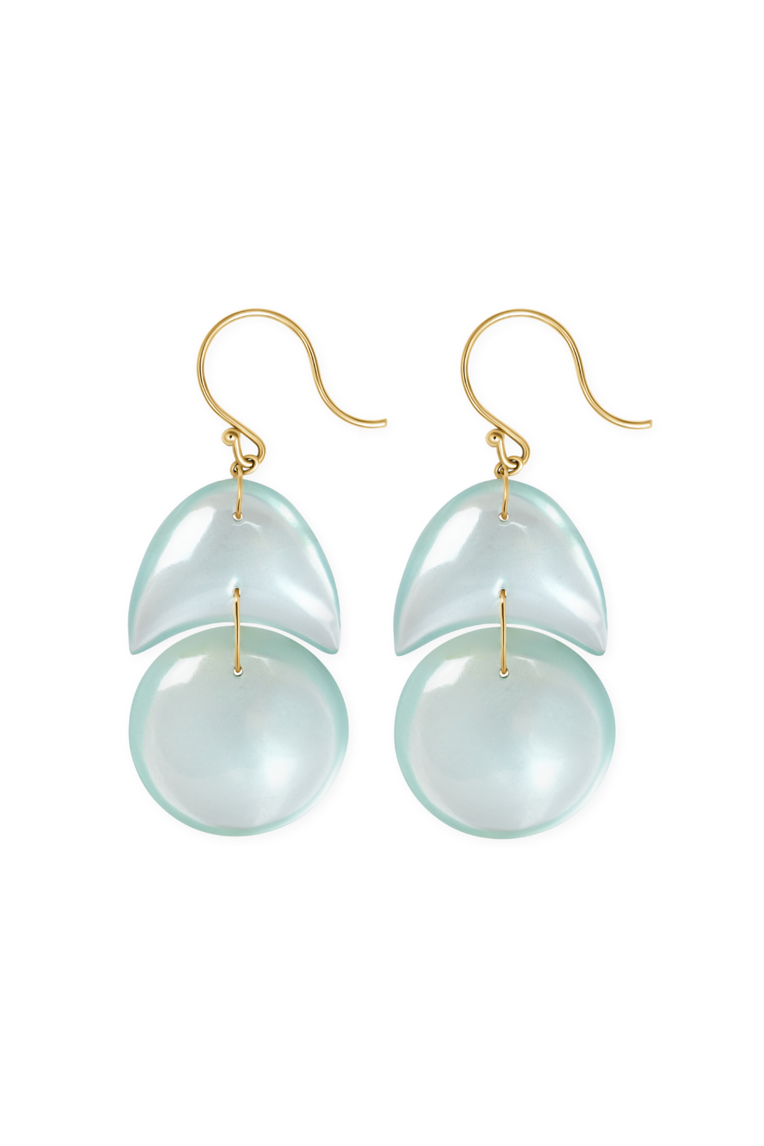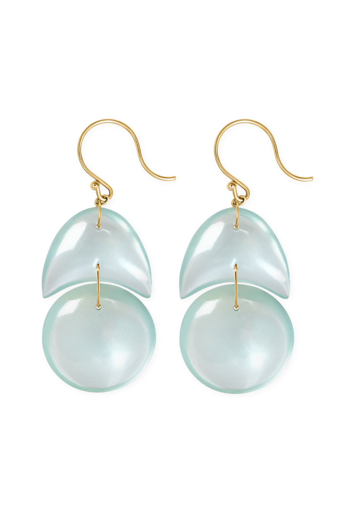 These organic shapes are hand carved in India of natural semi-precious stones, and the earrings are handmade in TenThousandThings' studio in New York City.