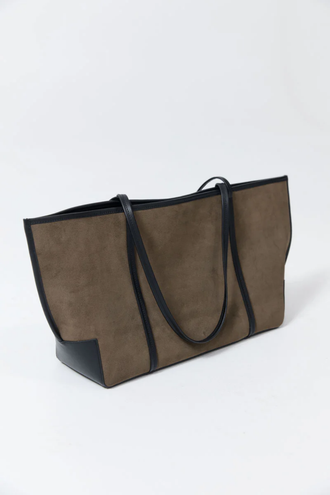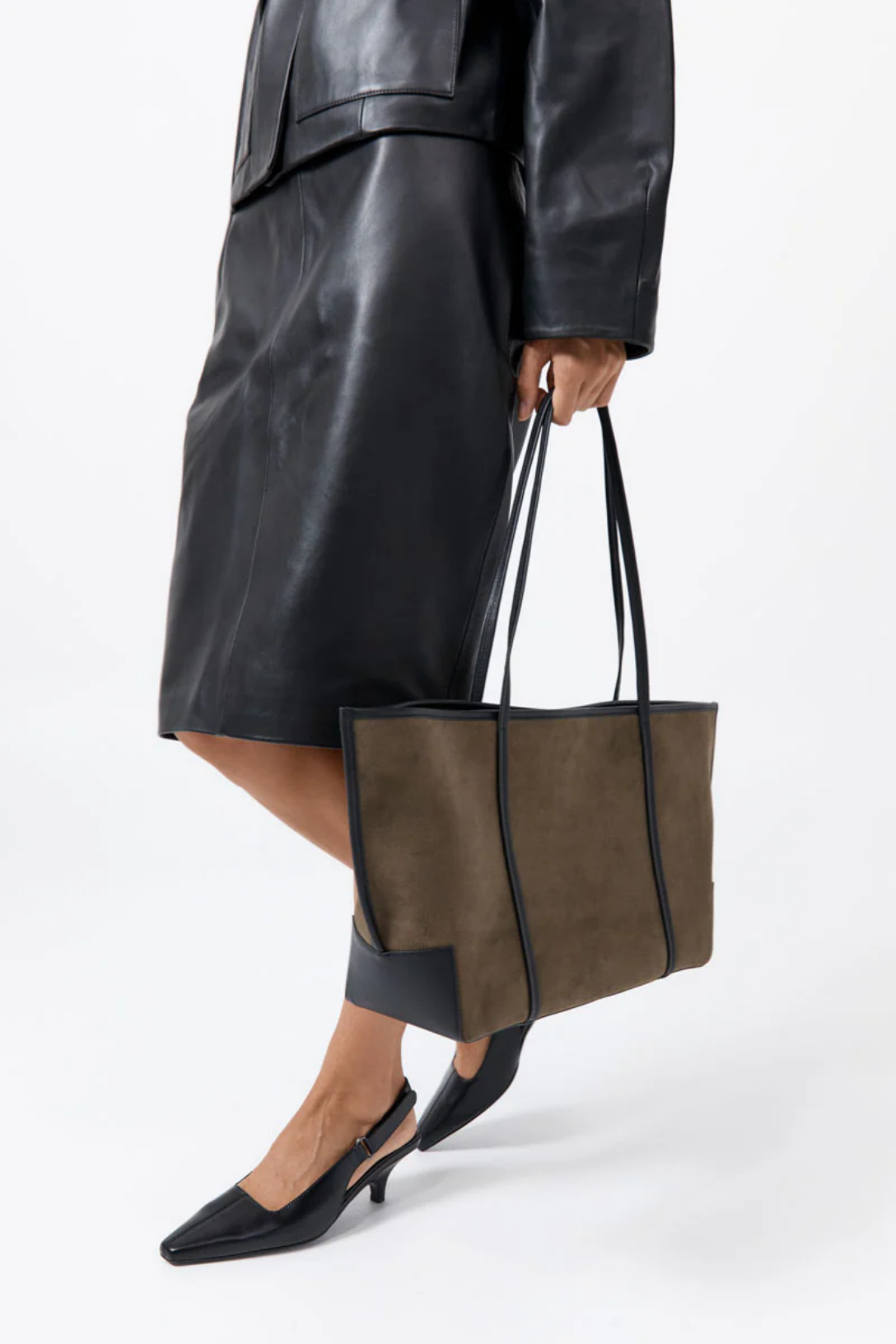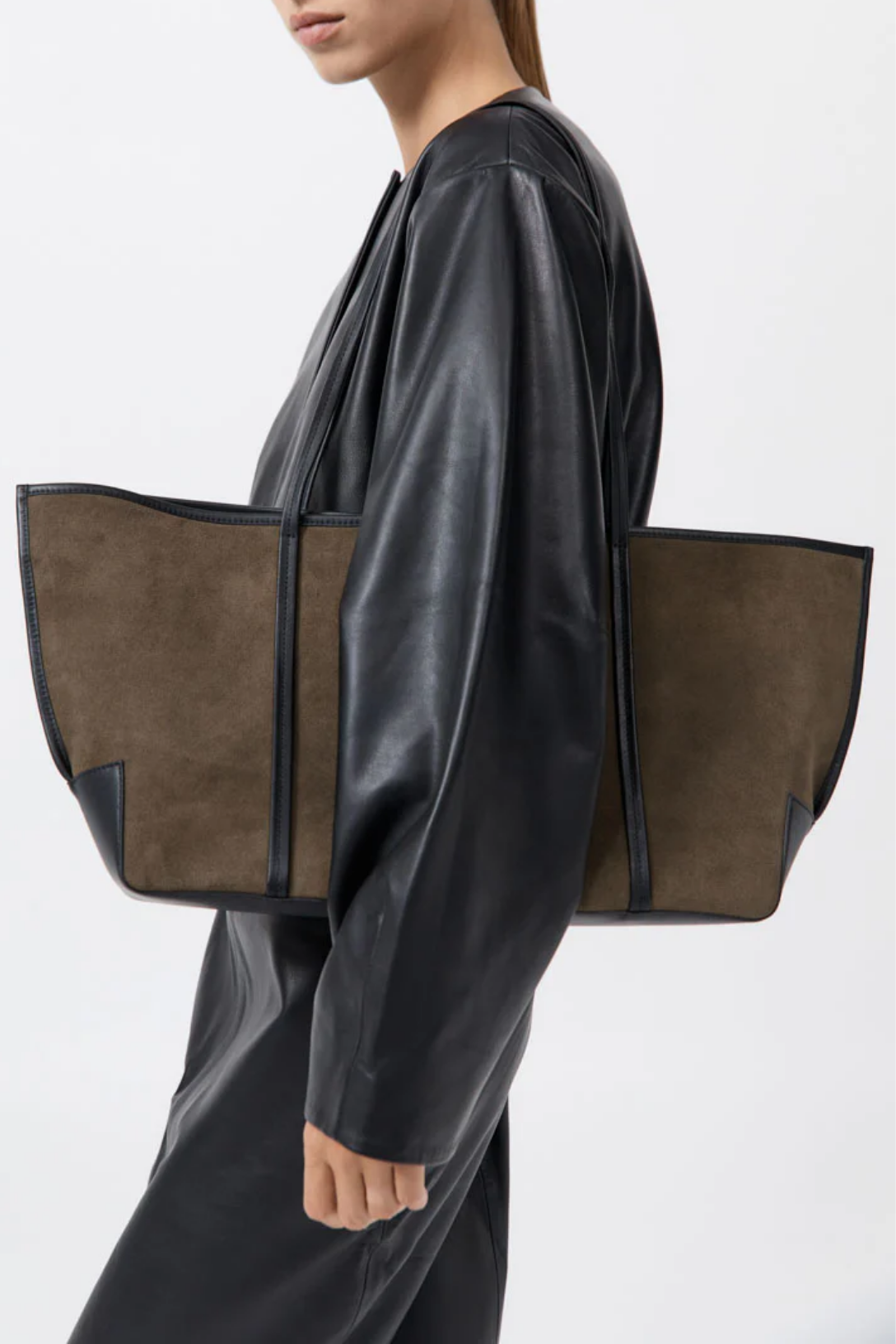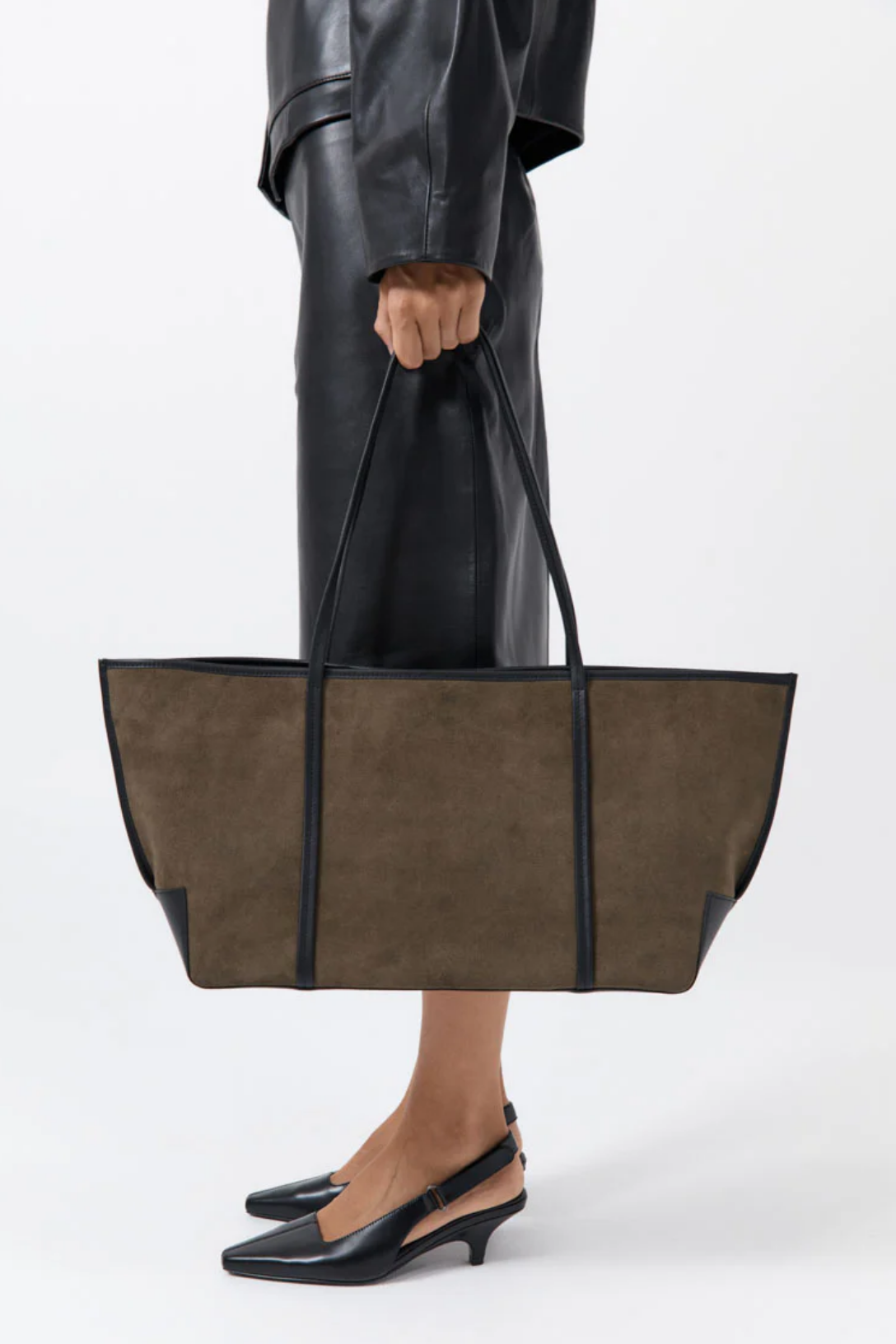 The Bateau Tote blends utilitarian structure with soft textural contrast, featuring a durable cotton canvas body trimmed with leather. Designed with a subtly curved top edge and double straps. An open interior with an internal pocket keeps essentials close at hand, making the Bateau Tote a considered companion for work and travel.