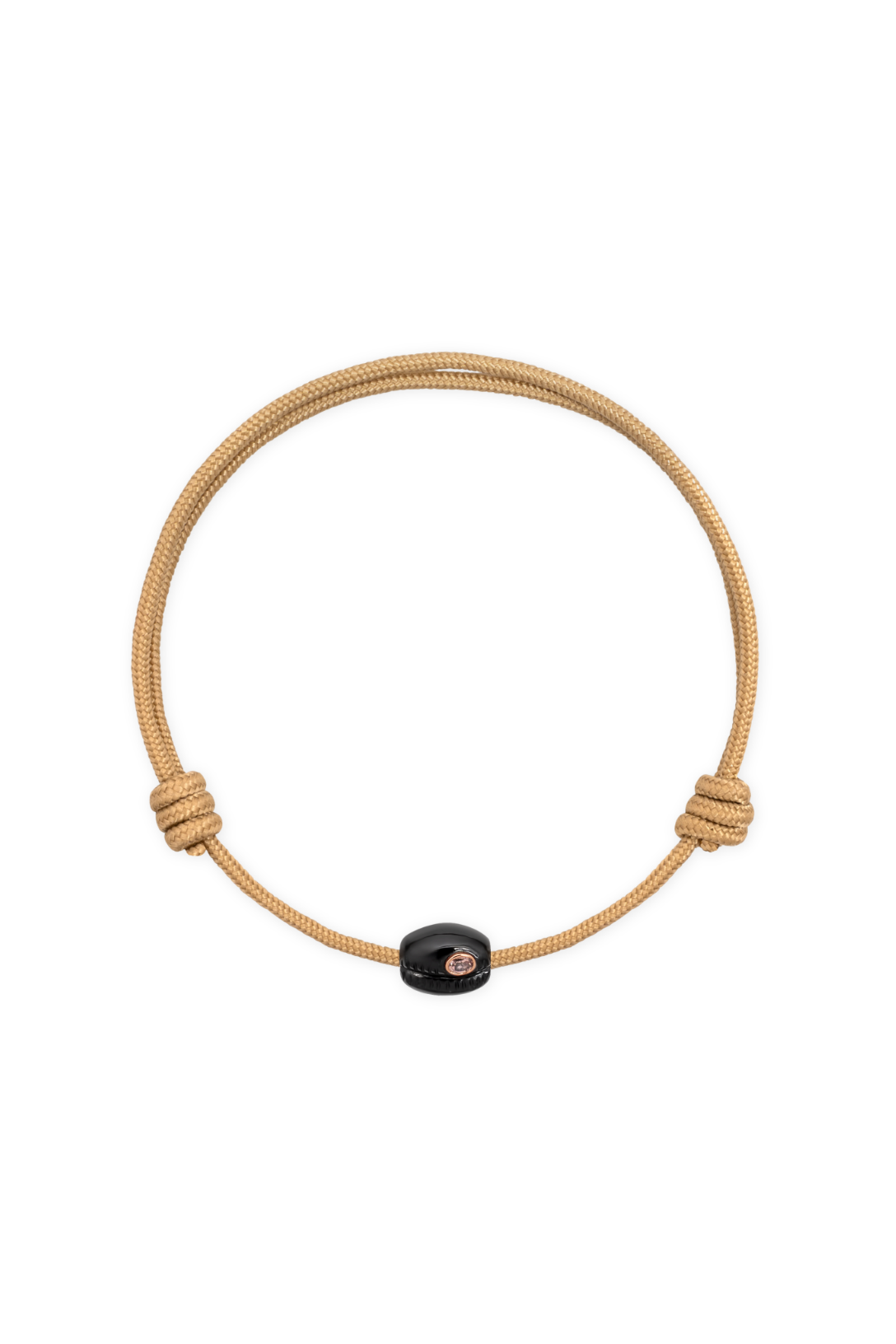 Surf cord anklet accented with a blue tiger eye cowry bead, featuring an oval garnet set in 18K Rose Gold for a subtle hit of warmth and shine.