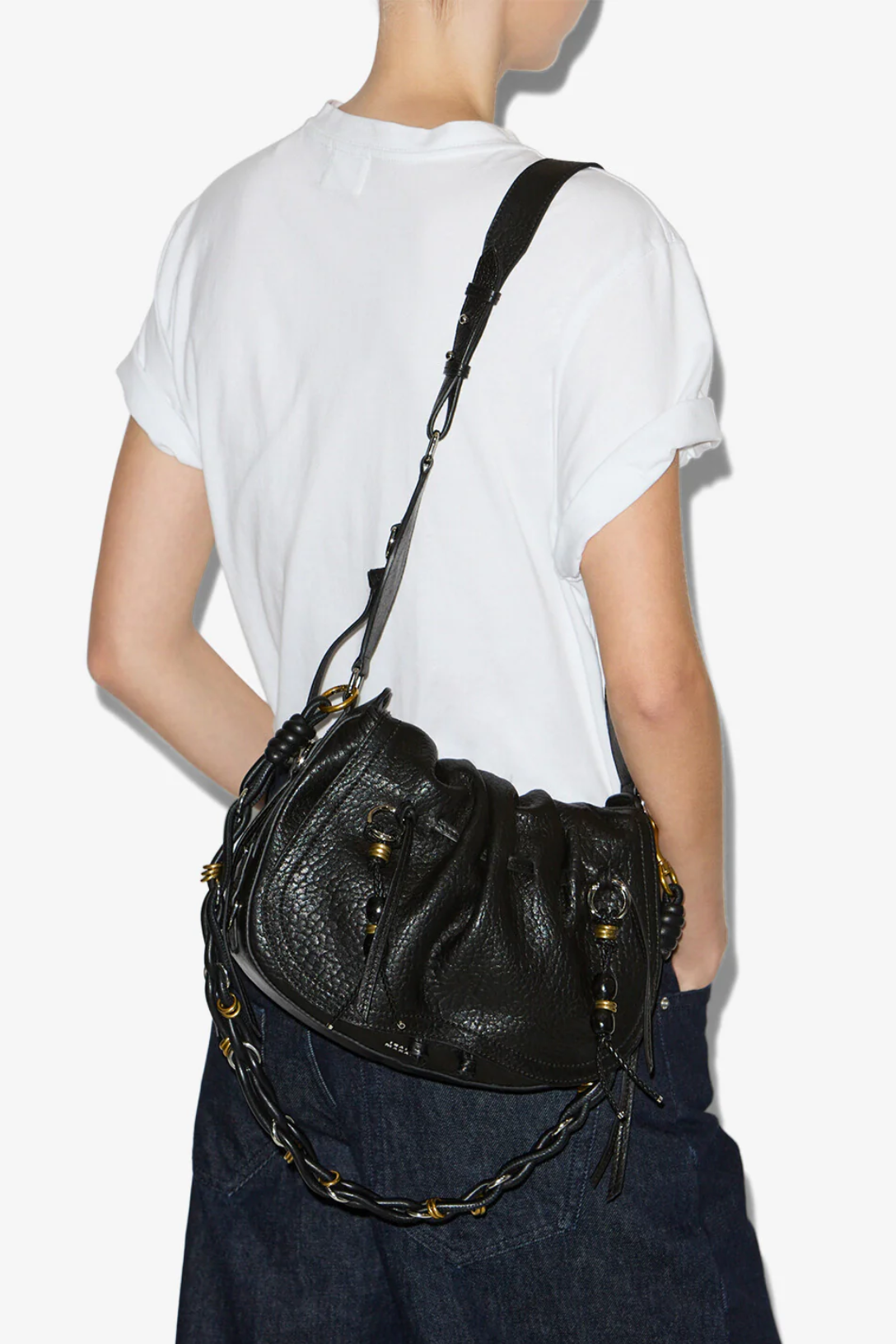 - Adjustable leather shoulder strap