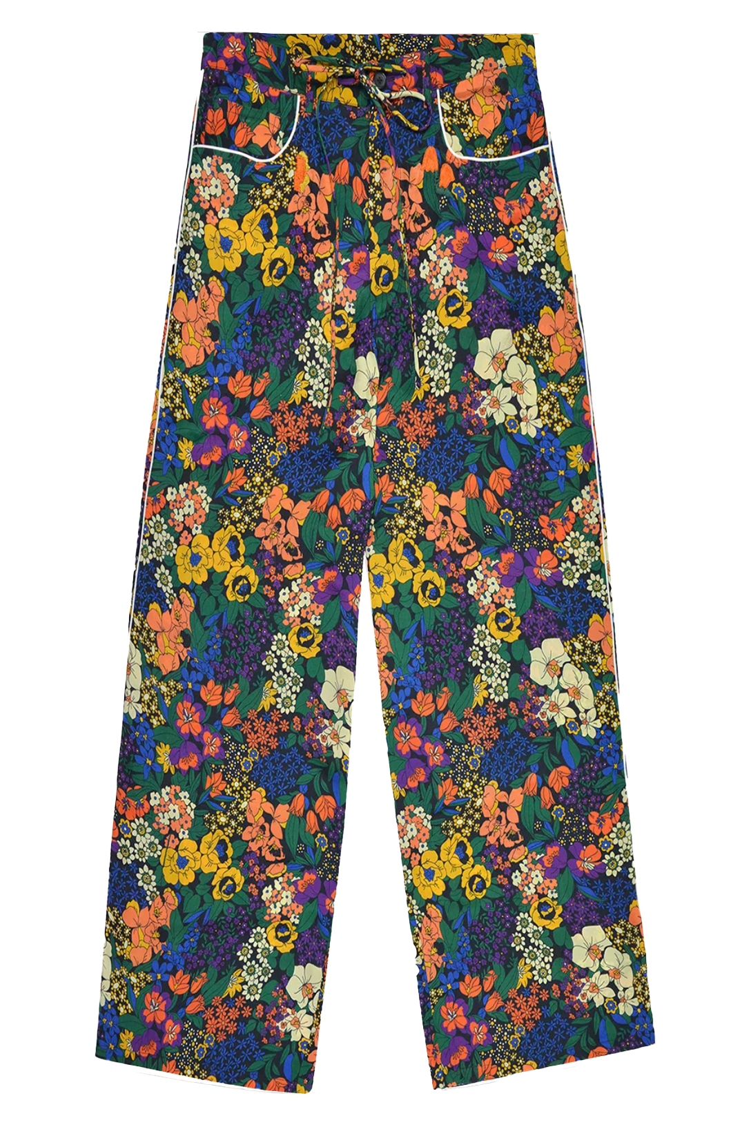 The Bouquet Pants feature a vibrant all-over floral print in bold, lively colors. Designed with a relaxed fit, an elastic waistband with drawstring, front pockets, and two back pockets, these pants bring a playful statement to any outfit while ensuring everyday comfort.