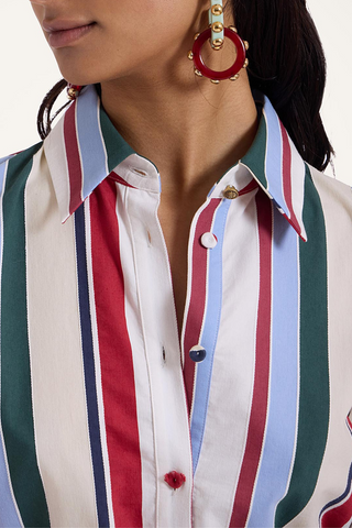 Looking for something smart but sweet, short and neat? Look no further than La DoubleJ's Choux Dress. This is a great number for their shorter Great Gorgeous Girls, but is equally as sassy worn as a thigh-skimming number too. With a cute collar and sweet trumpet sleeves, it comes crafted in La DoubleJ's exquisite jacquard to pack an extra punch for stay-or vay-cations. Note the intricate Scarab buttons, a nod to one of La DoubleJ's spirit animals from the Ancient Egyptian Mystery School, symbolizing resurrection.