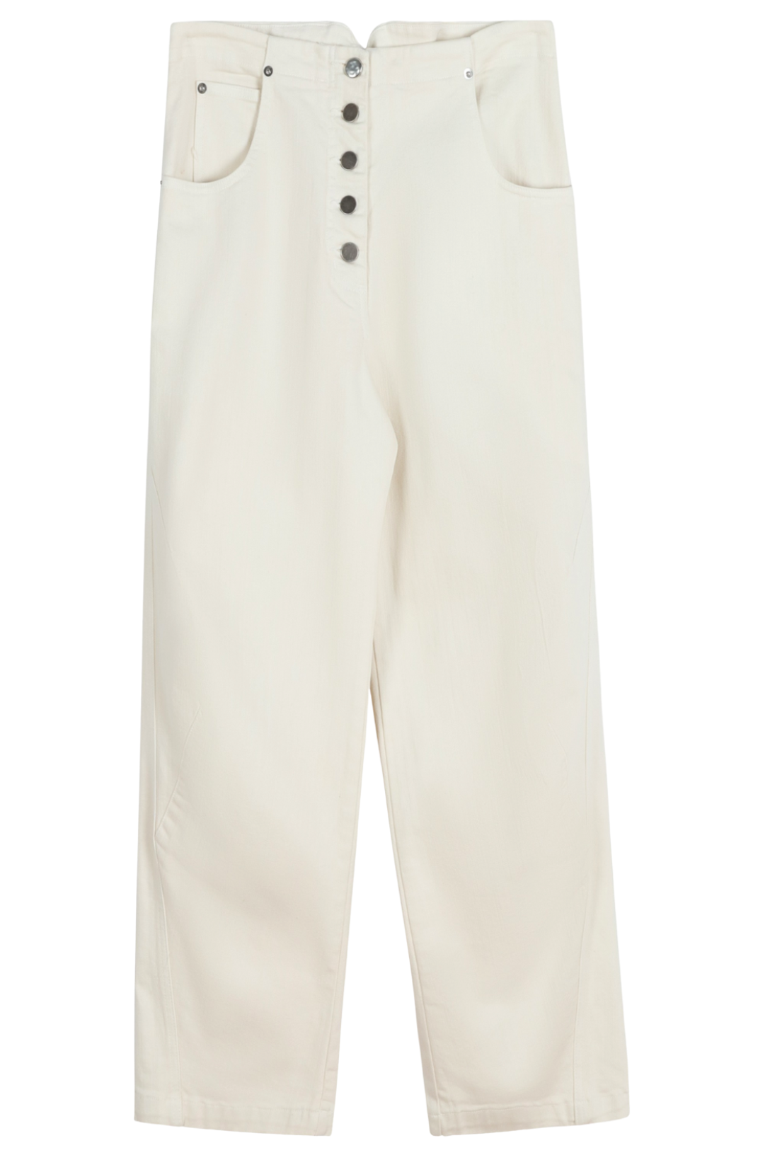 The Elkin Pant, one of Rachel Comey's all-time favorites, returns this season in their soft Dirty Pomona Denim. Designed with an adjustable back buckle tab so you can wear at your preferred waistline—be it low, hip-level, or cinched at the waist for a tailored silhouette. Angled darts give the leg a subtle cocoon shape, culminating in a chic crop.