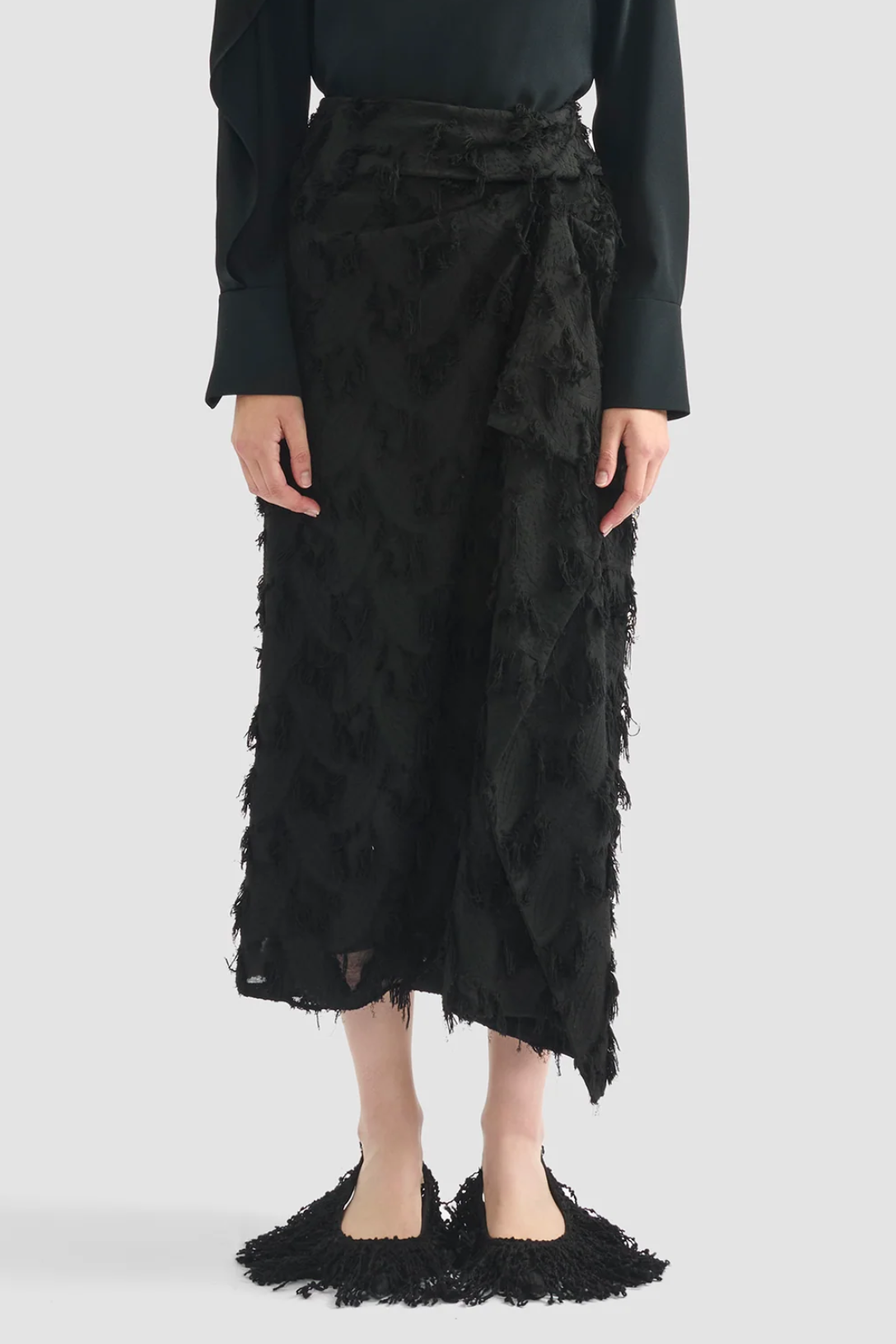 Fil Coupé Jacquard Draped Midi Skirt | Black