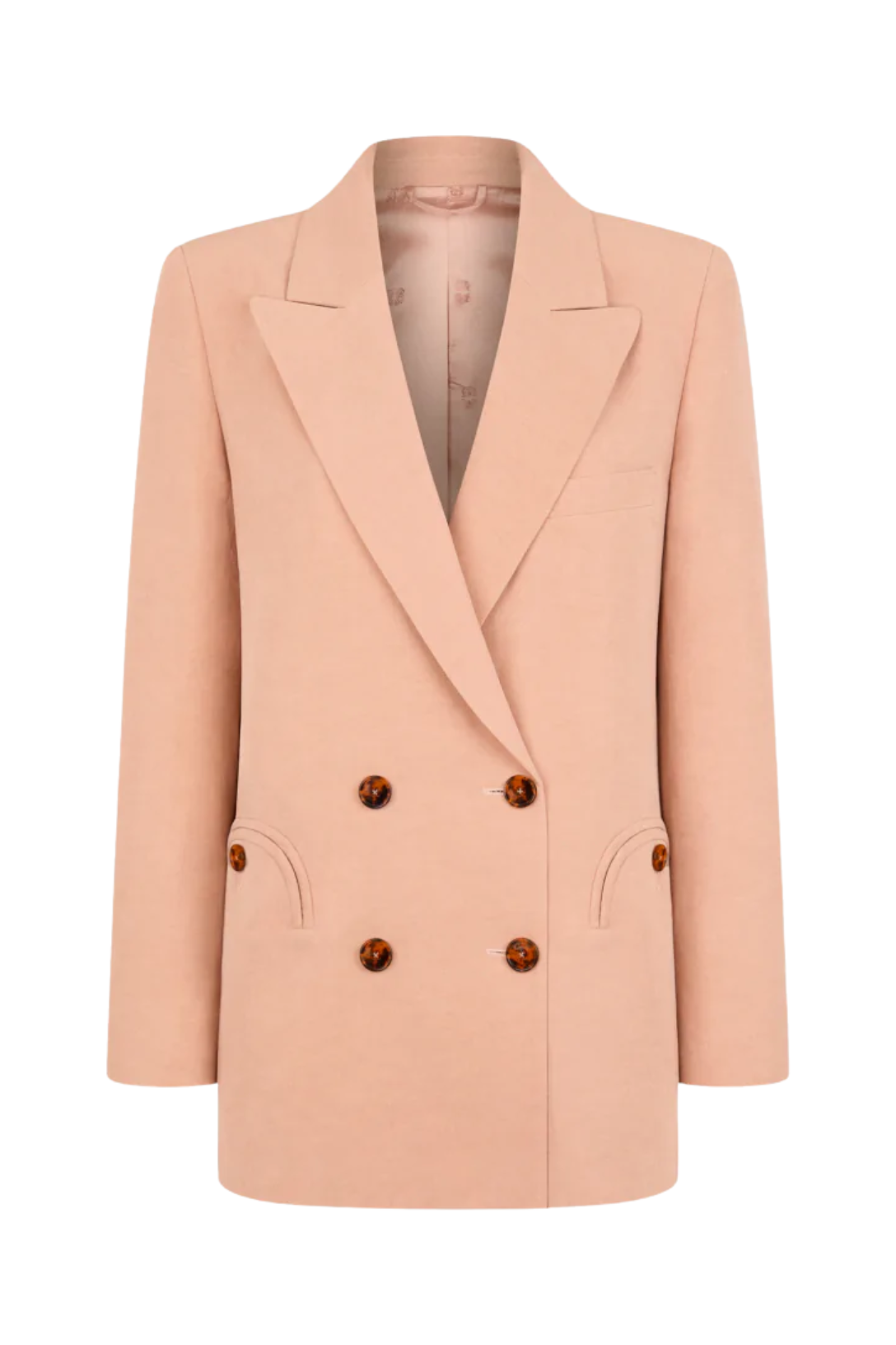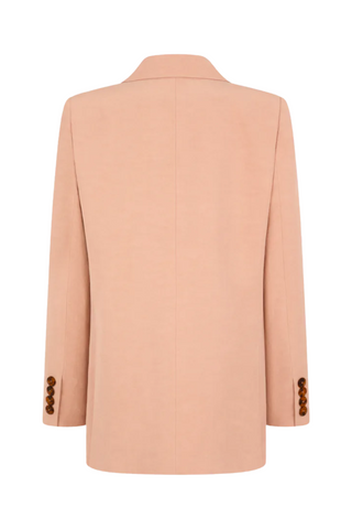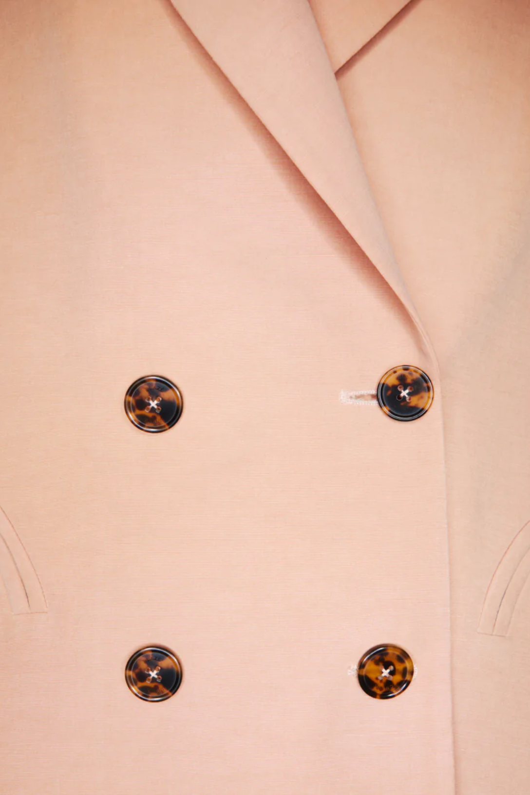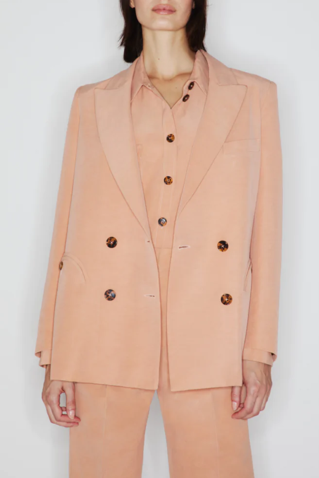Presenting the power-shouldered Everynight fit for the sunnier seasons in silk-linen, cast in a soft blush tan hue, and featuring large marble-effect buttons that complement the neutral palette. It can complete a suited look with the coordinating pants.