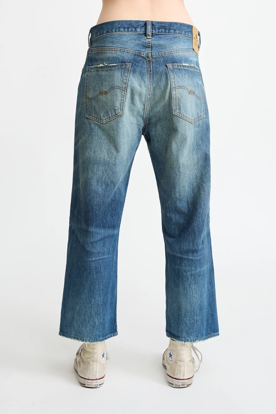 The Haisley Slouch Boyfriend Jean in Esher Blue features a low-rise waist and relaxed straight leg for an effortless, lived-in look. Crafted from faded, premium denim.