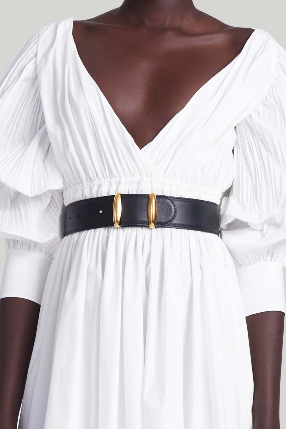 The Hardware belt is Italian crafted from smooth leather with tonal topstitching. It features two textured gold metal loops and a single pin fastening.