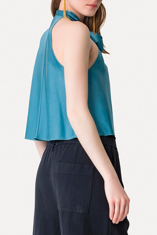 This top in weighty stretch silk satin is defined by the bare shoulders and a statement knotted tie detail. Sumptuously soft against the skin with a seductive sheen, the top in silk satin has great versatile styling potential and will lend itself to elegant outfits and casual layering alike.