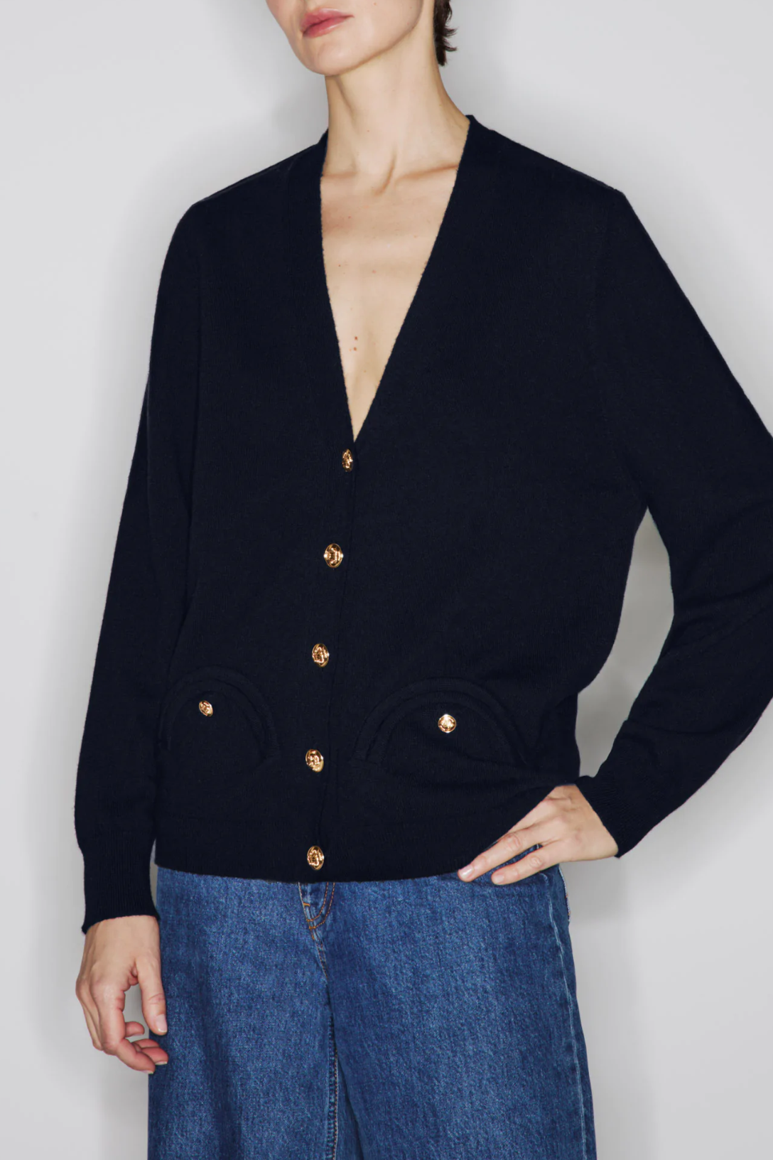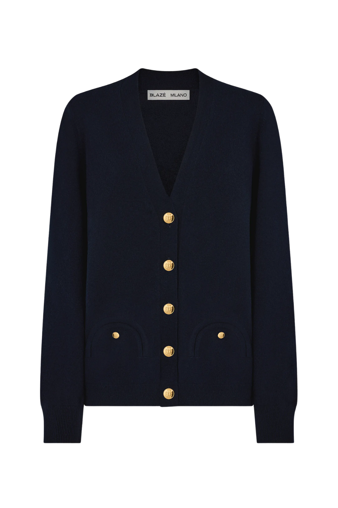 A luxurious, relaxed-fit wool and cashmere blend cardigan featuring Smiley pockets and gilded buttons embossed with the brand’s emblem. It’s a versatile, year-round wardrobe staple.
