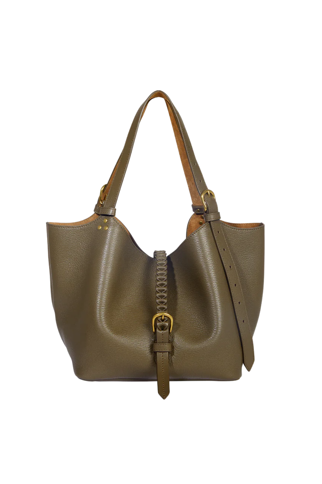- Closure with a hand-braided central tab