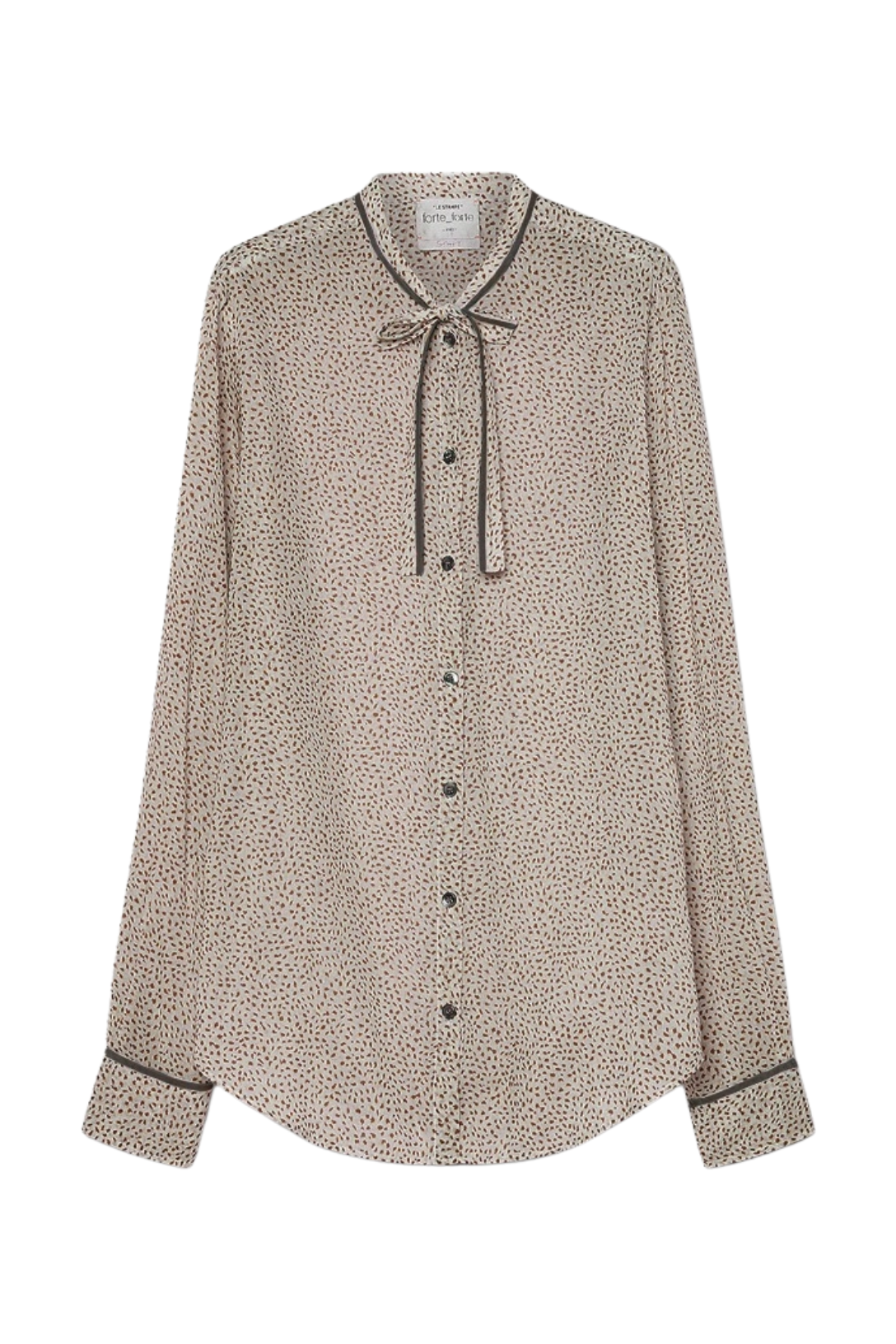 Voile shirt with bow embellishment cut from flimsy cotton and silk for a soft handle and doused in the new “les petits pois” pattern for an ethereal feel. The micro dappling fuses the neat elegance of a polka dot with an exciting eighties–style restyled animal motif.