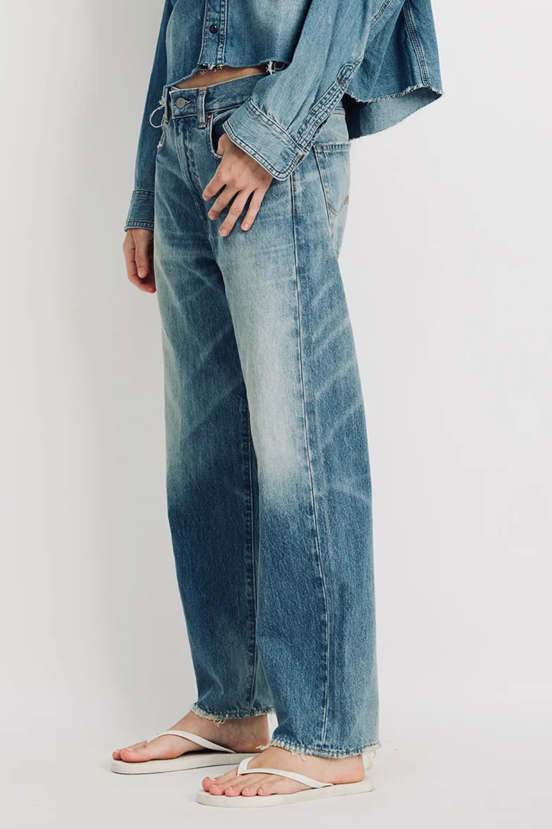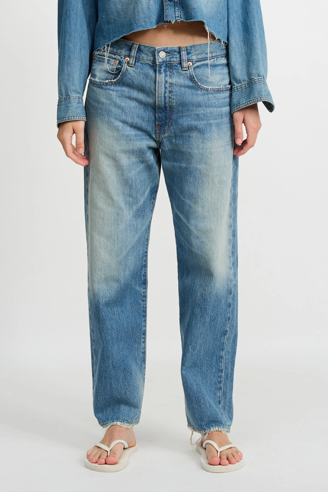 Relaxed boyfriend jean with a loose fit through the hip and thigh. Finished in a faded Glenmore Blue wash with classic five-pocket styling.