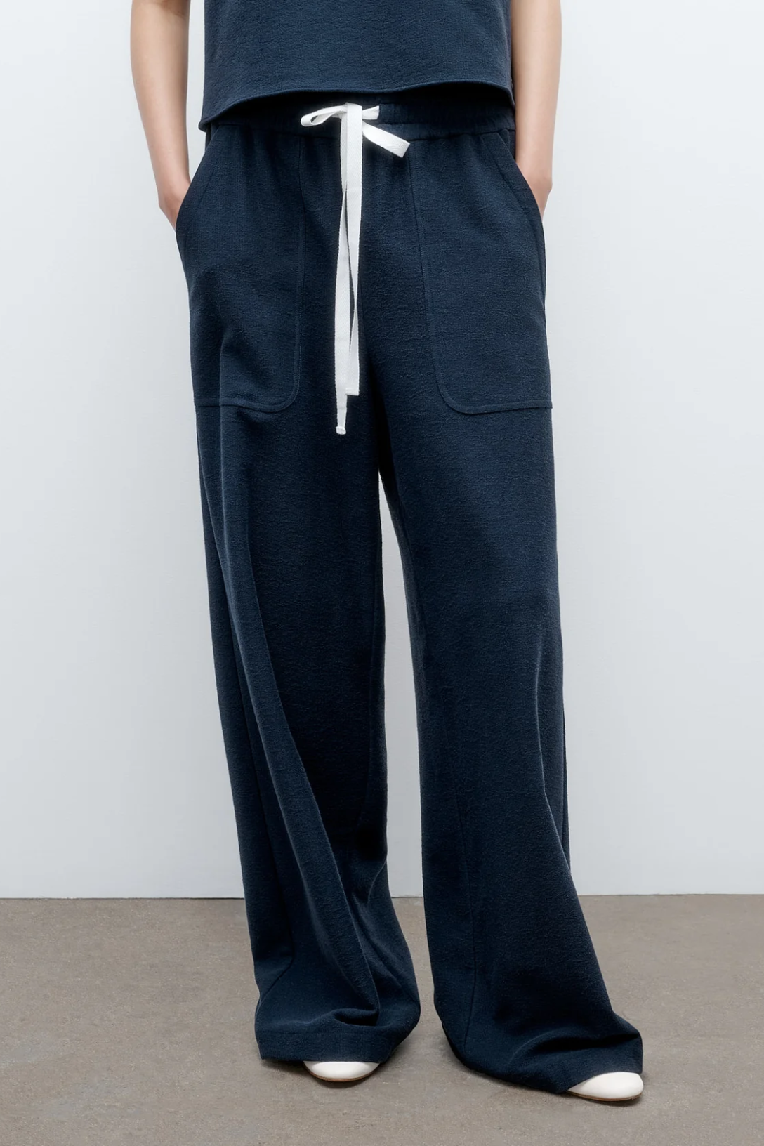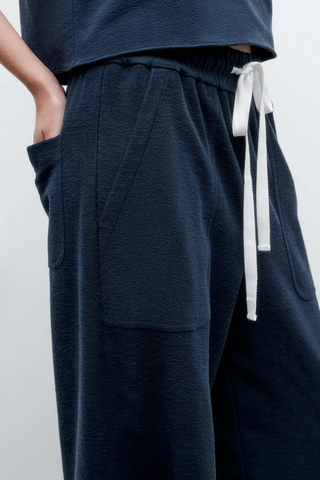 Mid-rise, pull on pants in French terry. The Main St. has a relaxed, wide leg. Complete with deep side pockets, elasticated waistband and cotton drawstring.