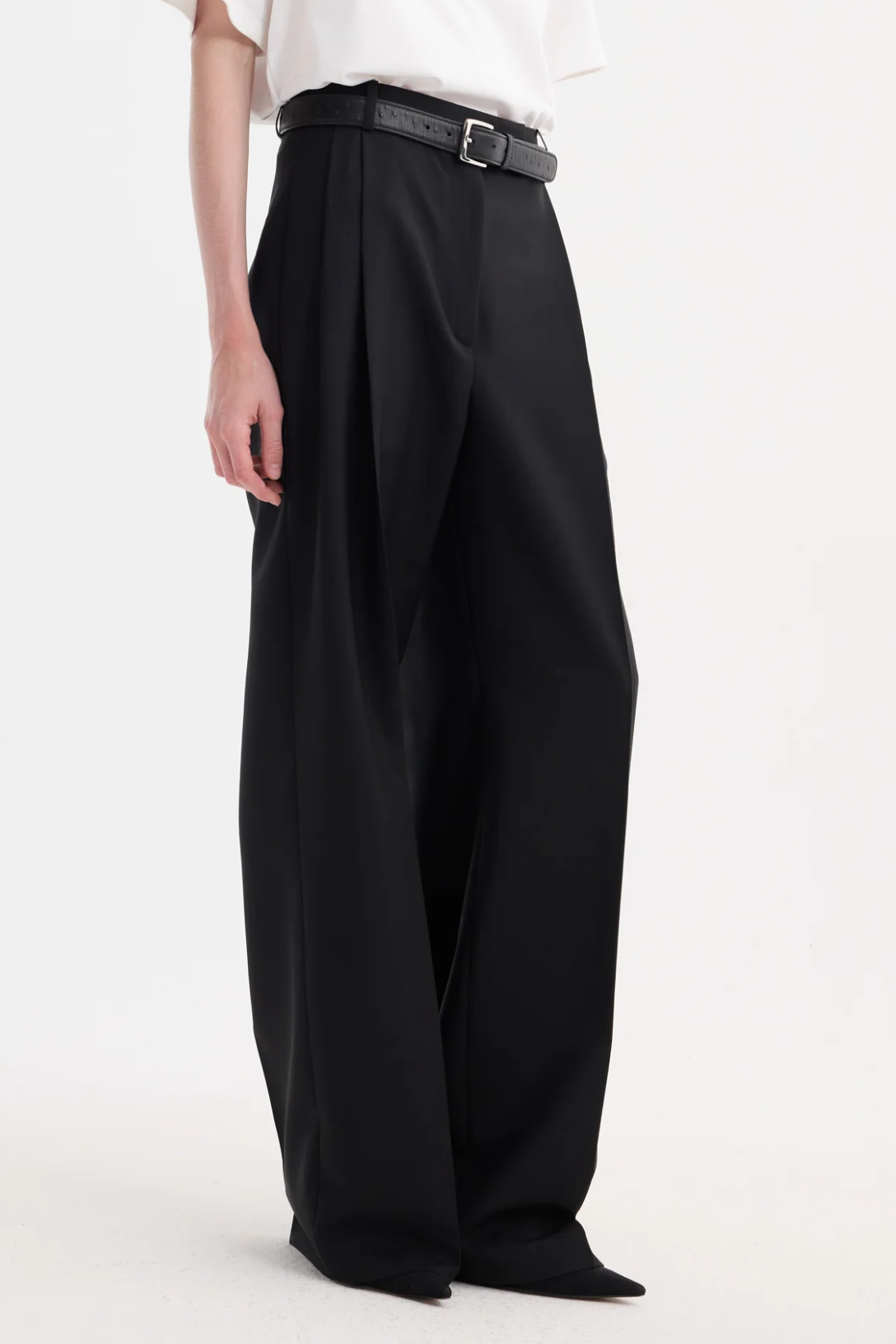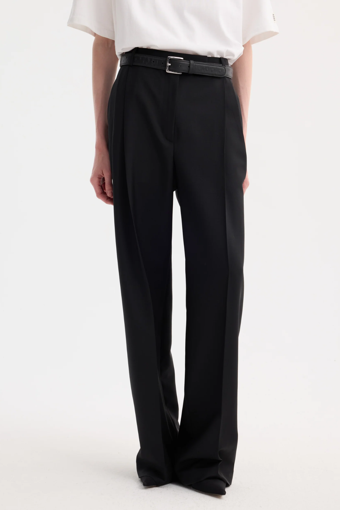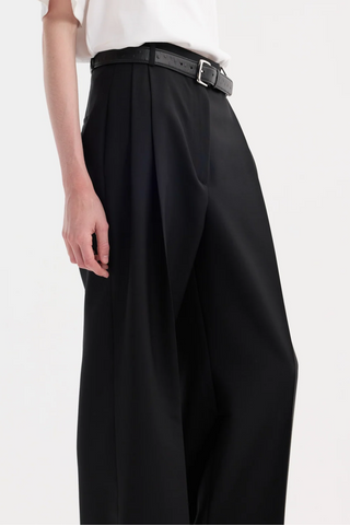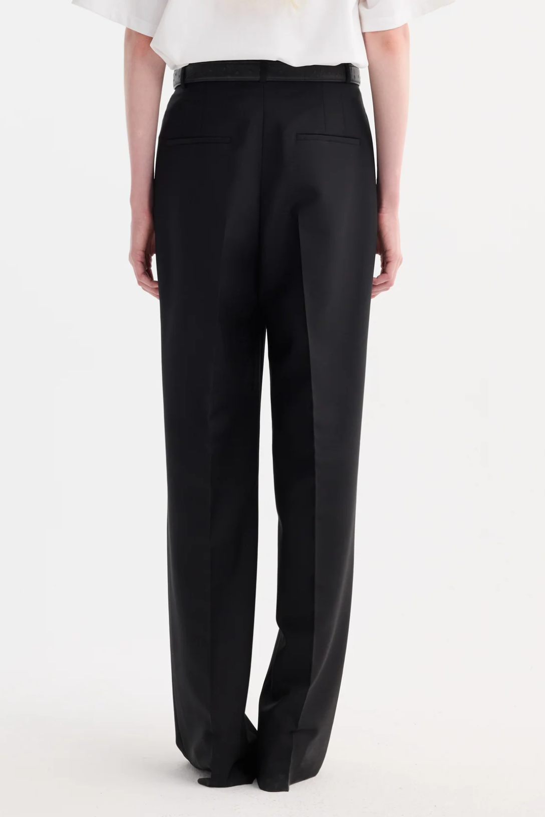 Introducing Rohe's classic mid-waist tailored trousers crafted from a beautiful virgin wool and mohair blend fabric. With a tailored waistband, sharp double pleats and a flattering wide leg.
