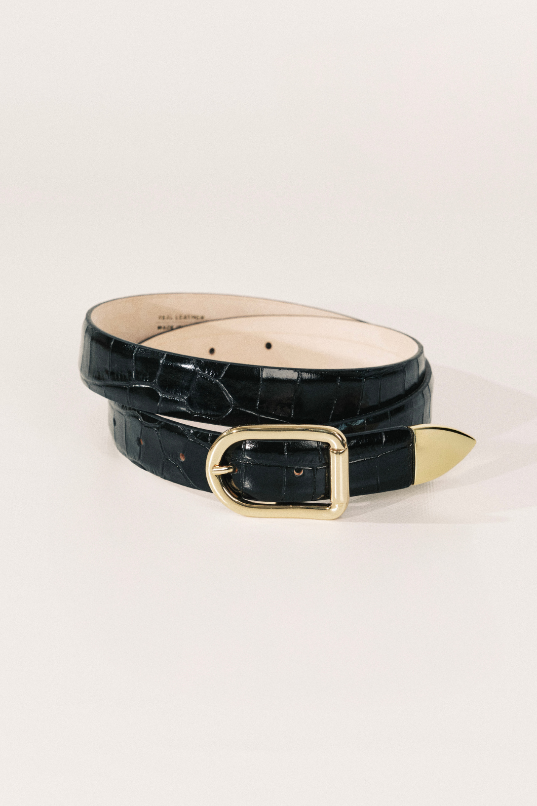 Mija Croco Tip Belt | Black Croco / Gold