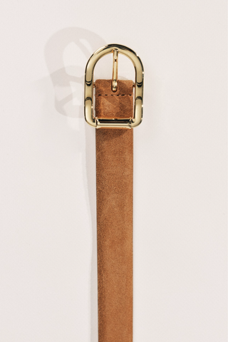 A belt that distills the essence of Déhanche’s design philosophy : clean-lined, intentional, and quietly compelling. It’s the minimalist counterpart to the bestselling Hollyhock, featuring the same 10-hole adaptability in a more pared-back silhouette. Crafted in Italy from smooth calfskin suede, The Mija is anchored by a rounded, flat buckle, a sculptural closure in 24K Gold. Its proportions are soft, but its presence is defined.;