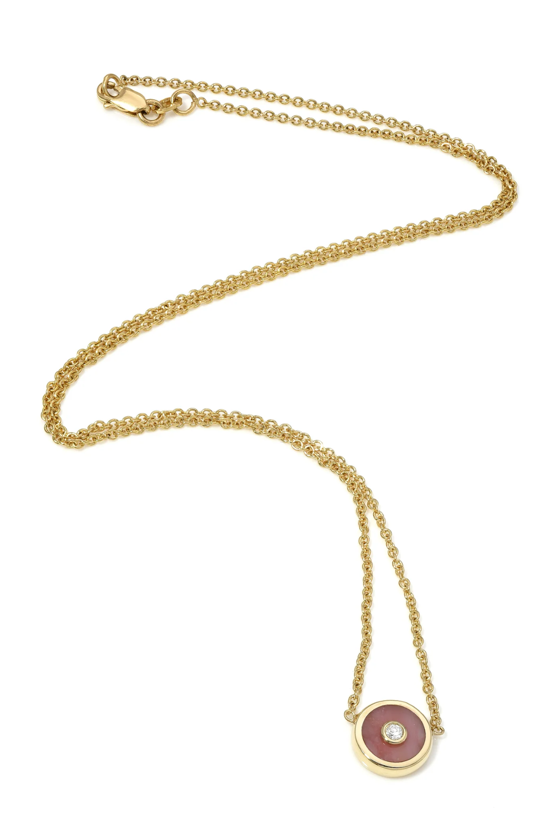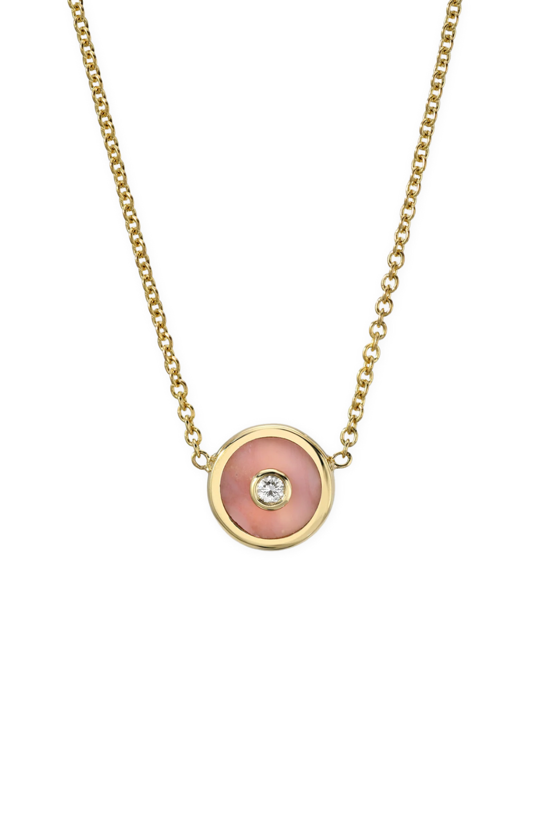 - Hand cut Pink Opal inlay set in 14K Yellow Gold with 0.02ct white diamond