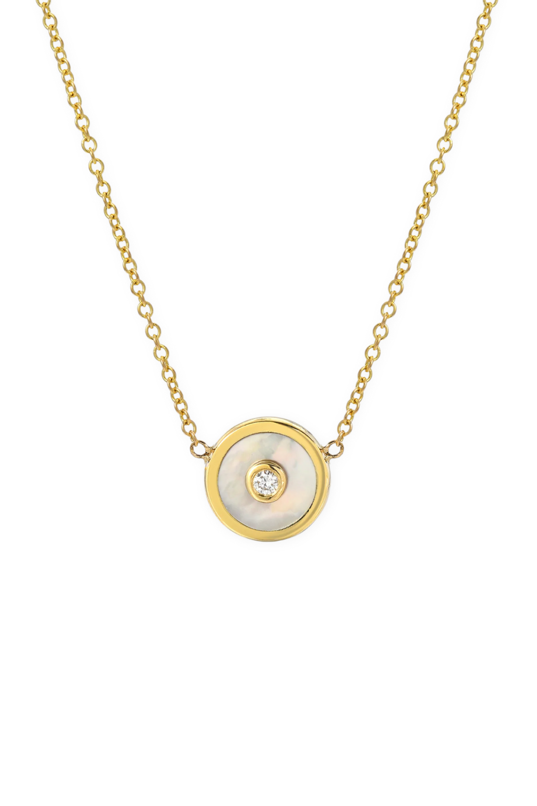 - Hand cut Mother of Pearl inlay set in 14K Yellow Gold with 0.02ct white diamond