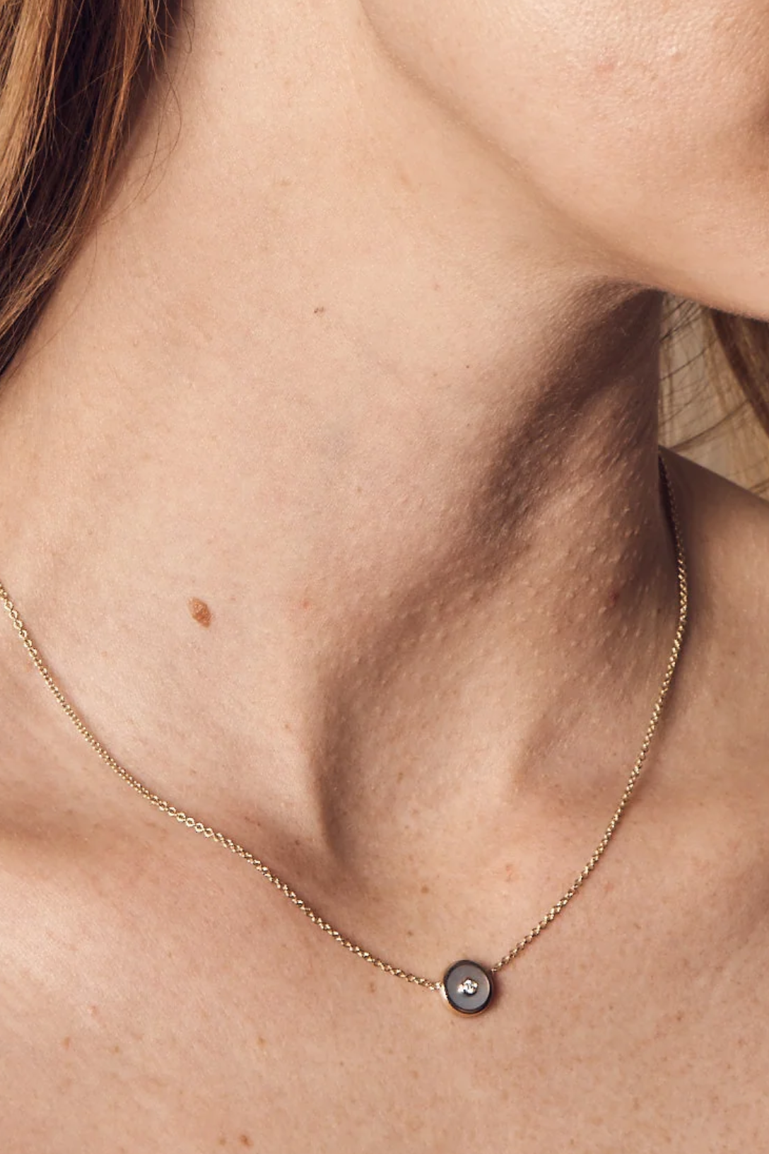 - Pendant is approximately 9mm in diameter. Chain is 16" long
