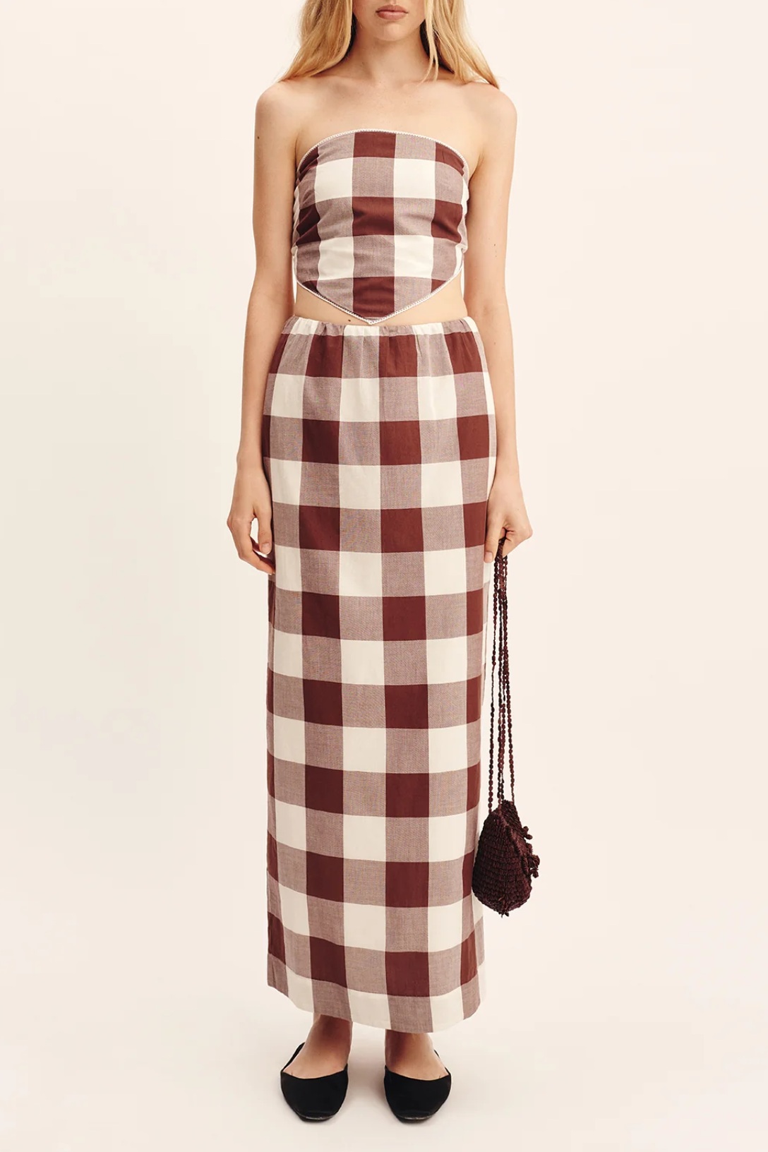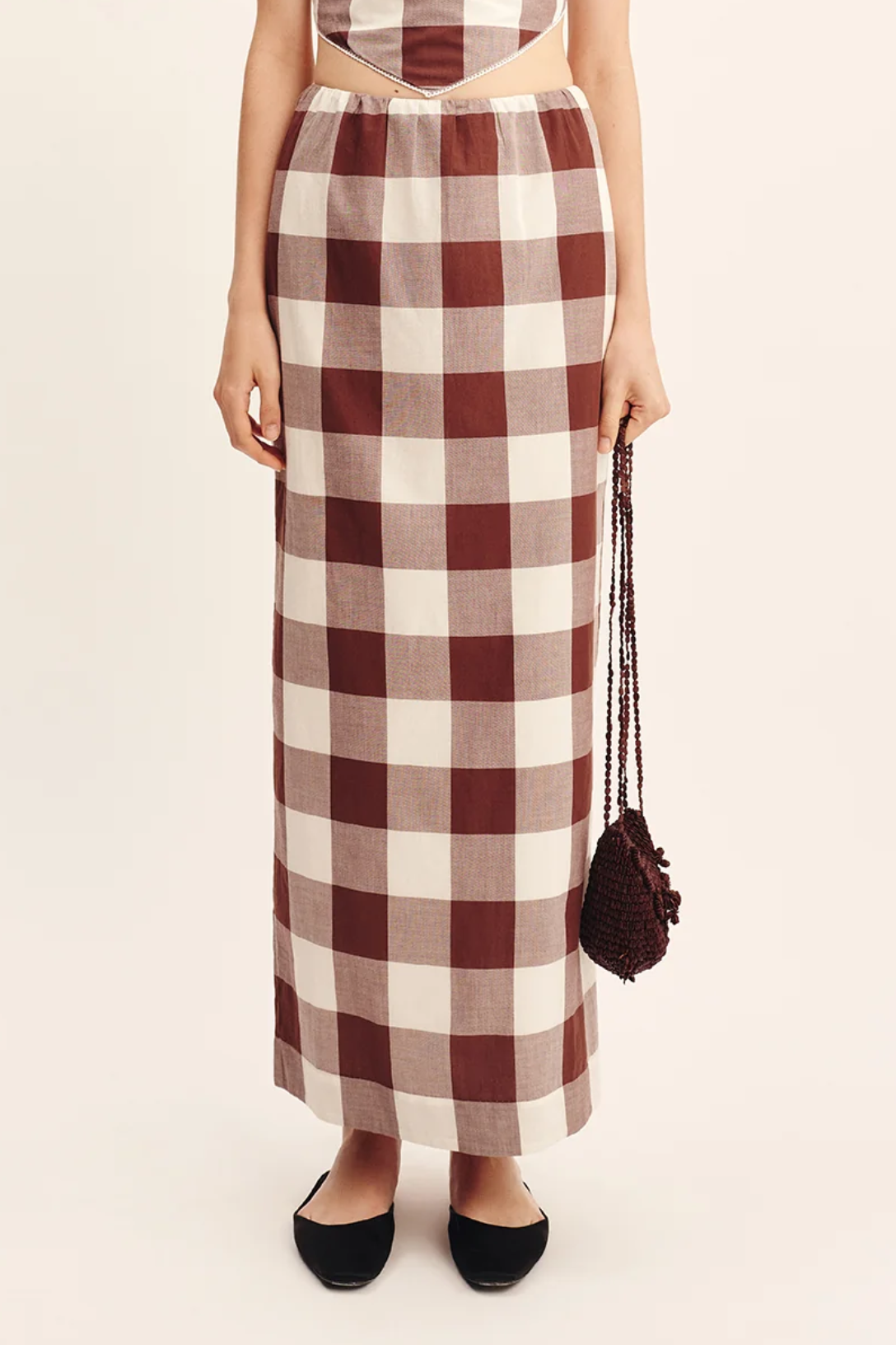 Cut from hand-loomed cotton, the Mira Skirt has a sleek column silhouette that falls effortlessly to a maxi hem. It sits comfortably on the high-rise waist and can be styled as a set with the Callie Tie Top.
