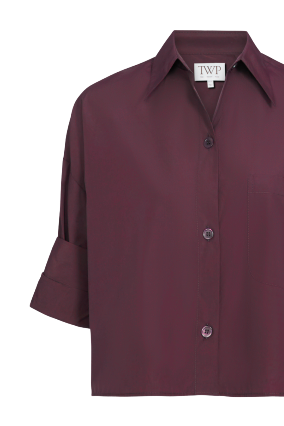 Cropped, short sleeved button down in superfine Italian cotton shirting. The Next Ex is a boxy silhouette. Complete with a chest patch pocket, button up placket, spread collar, and signature double roll button cuffs.