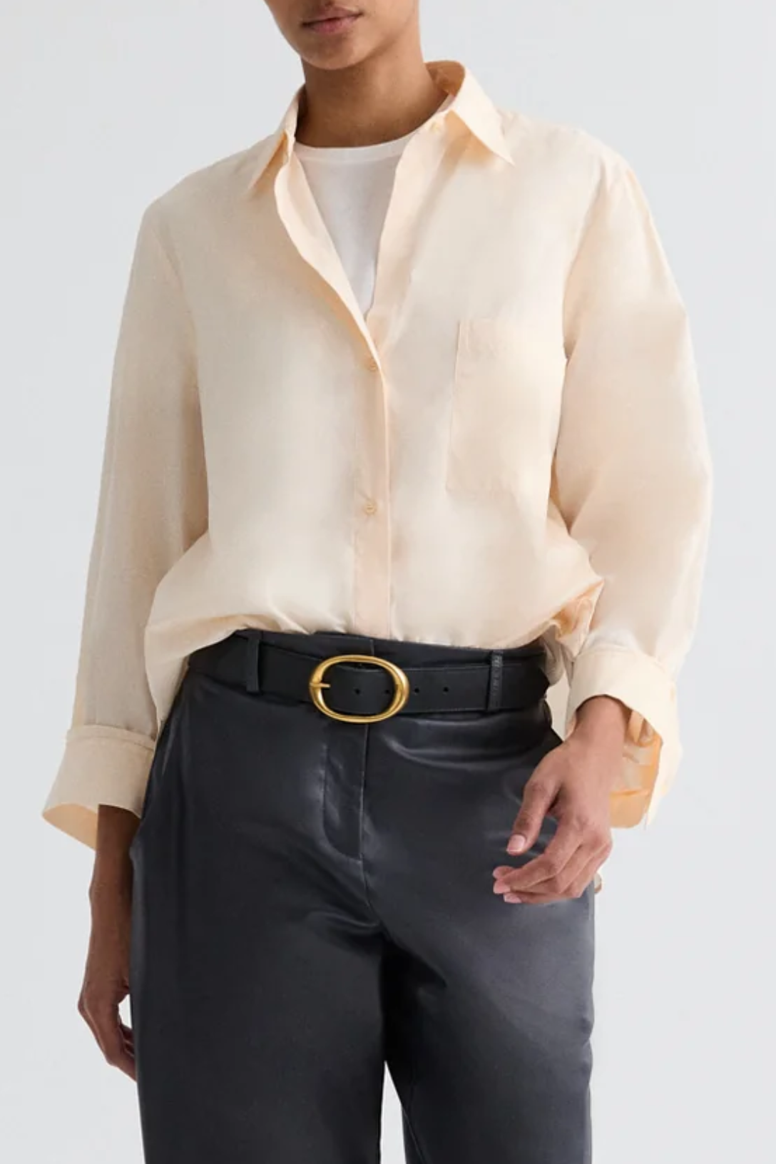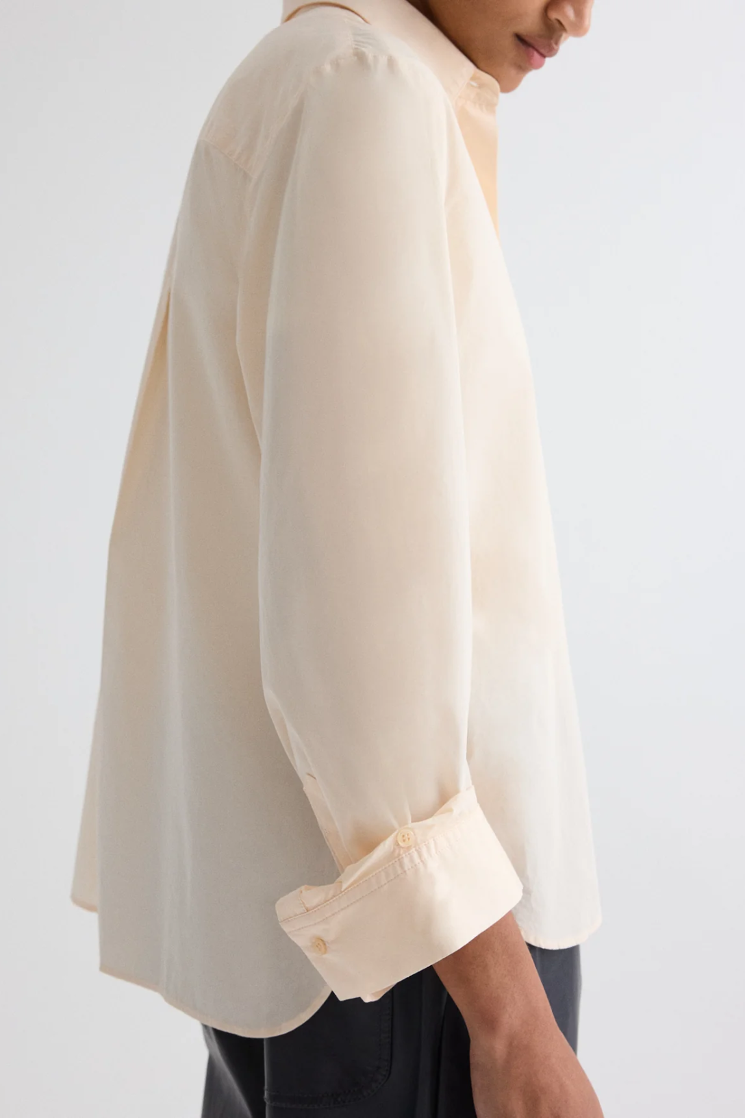 Oversized button down shirt in superfine Italian cotton shirting. The Next Morning is a relaxed silhouette with a center box pleat at the back. Complete with an exposed button up placket, chest patch pocket, spread collar and single roll button cuffs.